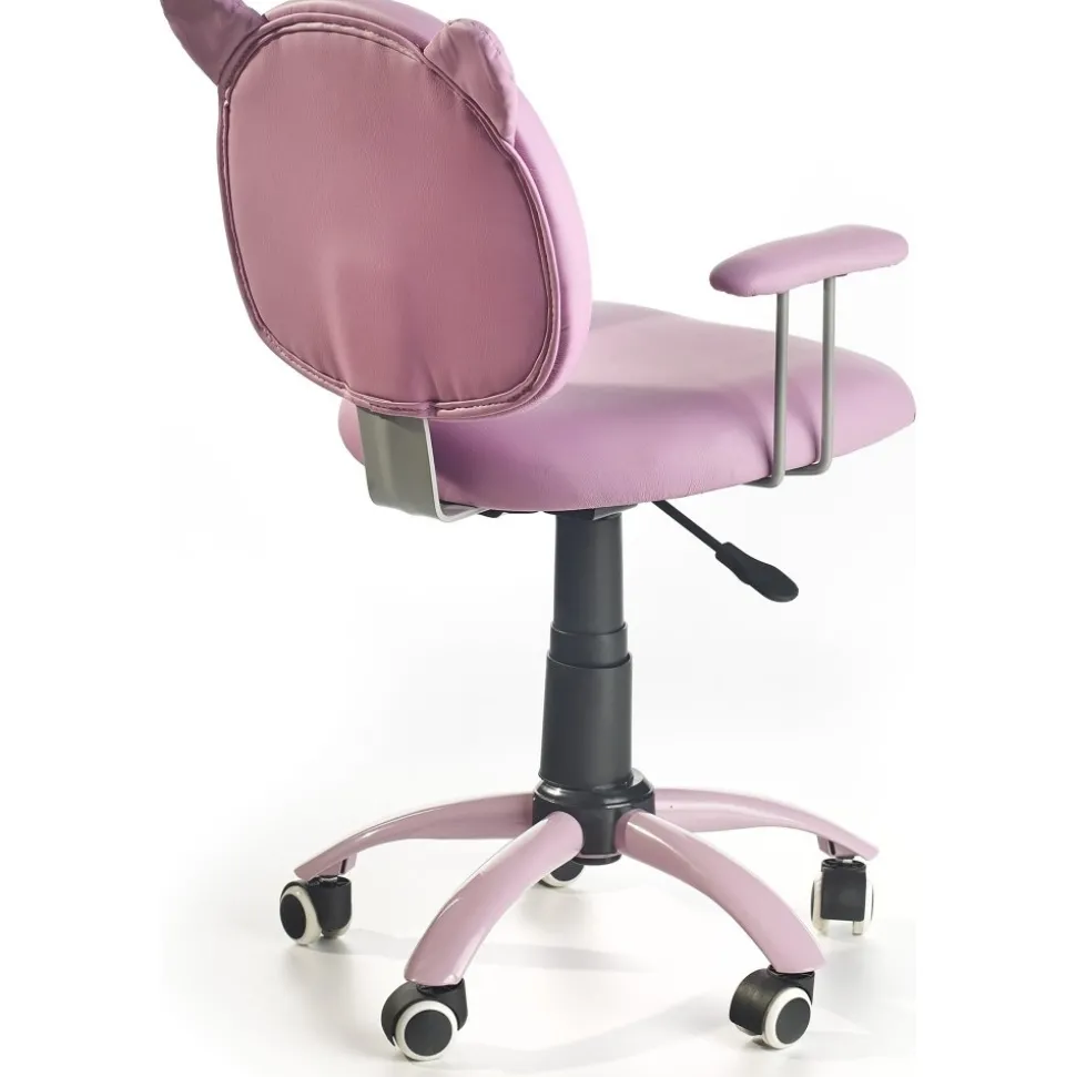 En mysig skrivbordsstol som passar perfekt till barnens rum. Klädd med ett mycket behagligt rosa konstläder med fint tryck på ryggstödet. Höj- och sänkbar sits med hjälp av spaken under sitsen samt lätt att förflytta tack vare hjulen på stjärnfoten.