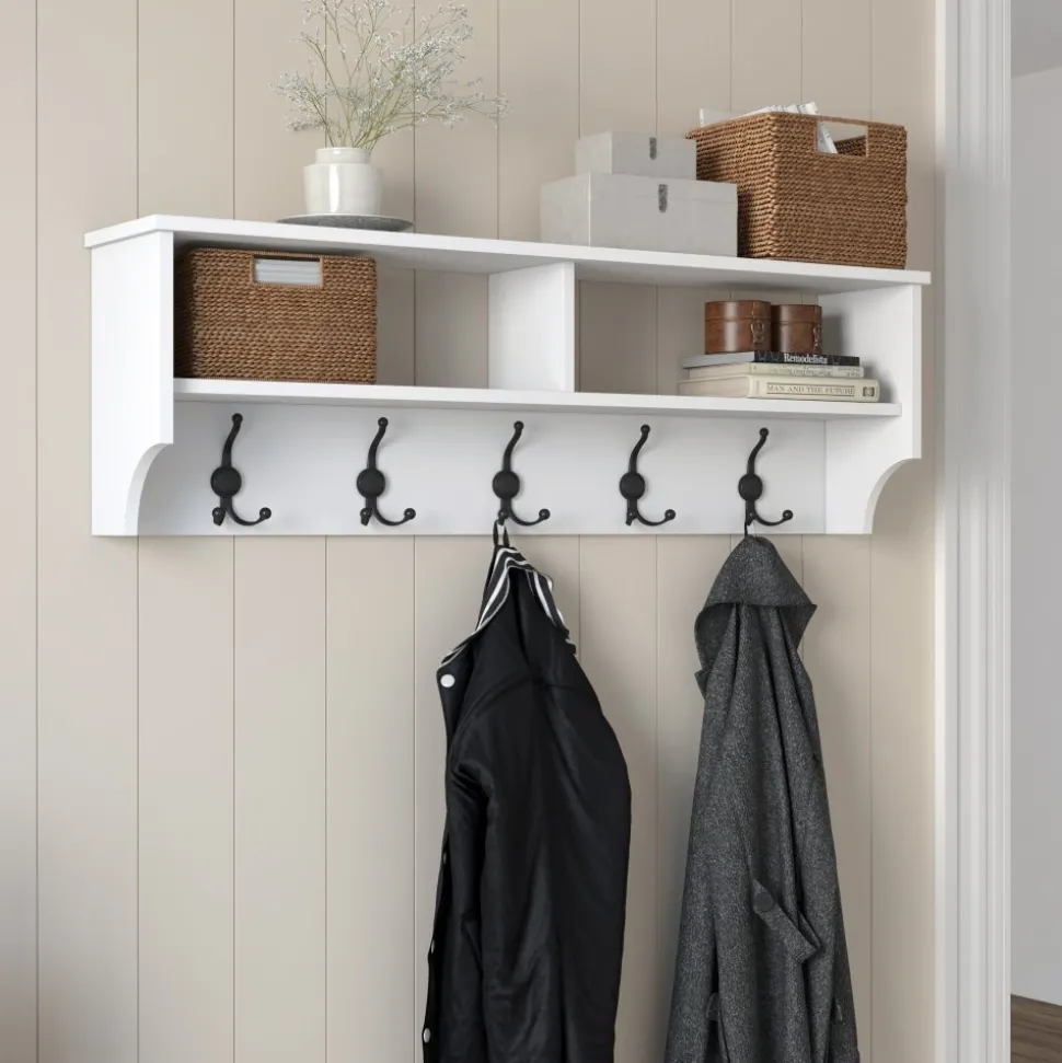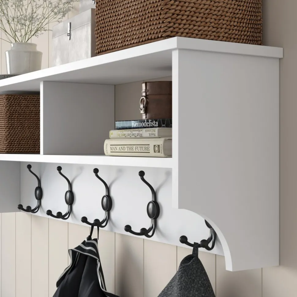 En funktionell som kombinerar smart förvaring med stilren design. Tillverkad av melaminbelagd spånskiva för en hållbar och lättskött yta. Den vita färgen gör att den passar i de flesta hem och hallmiljöer.