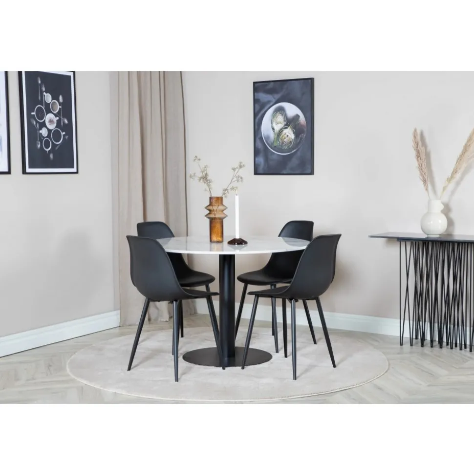 Matbord av marmor och metall.