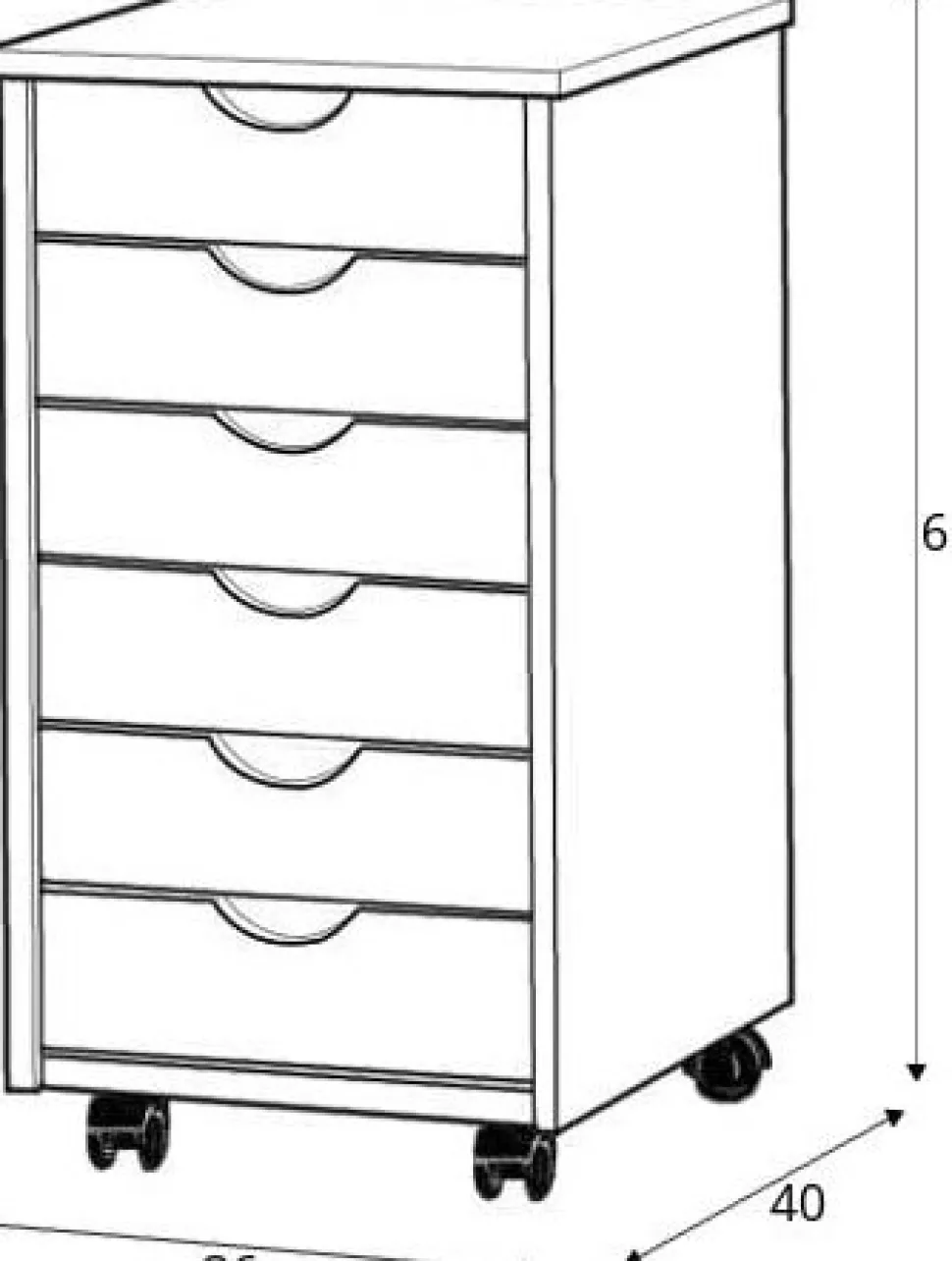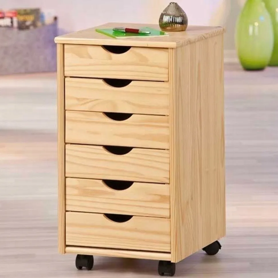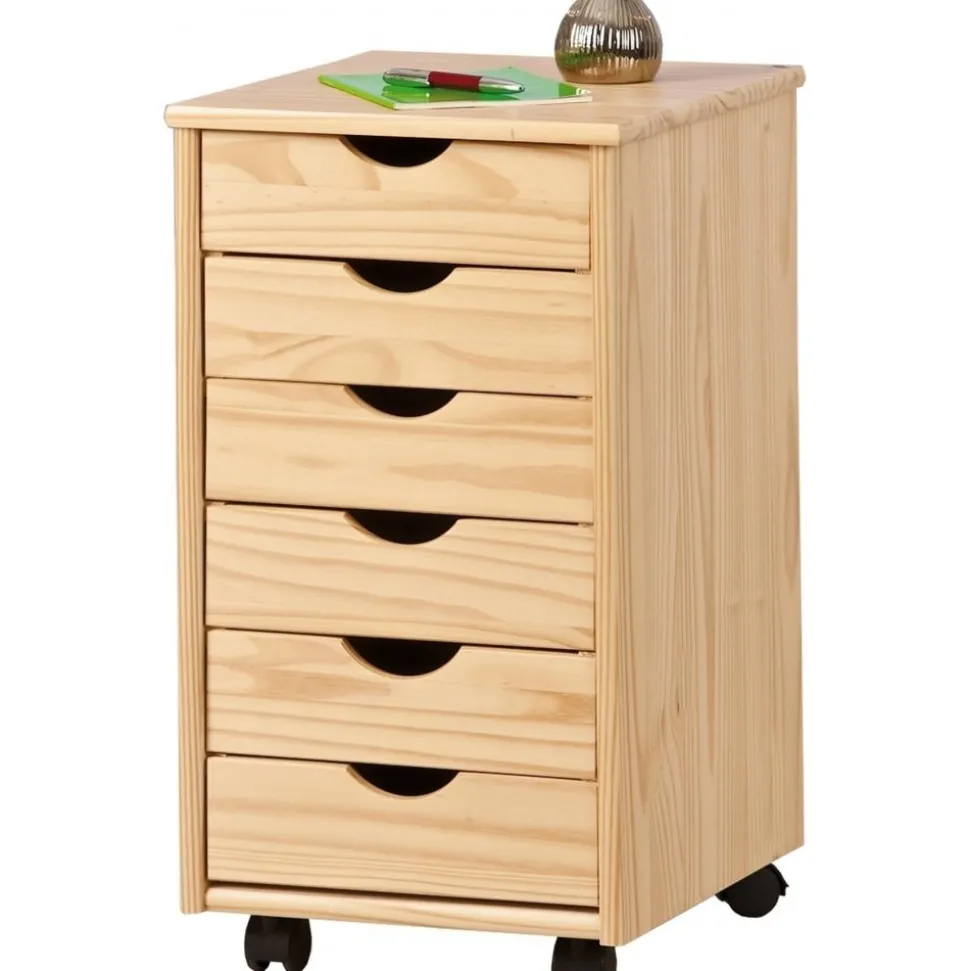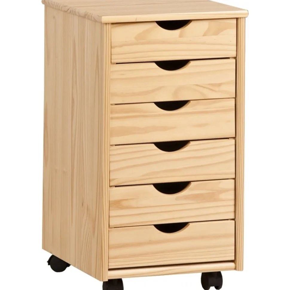 Snygg och praktiskt lådhurts med en stilren design. Tillverkad i furu med dess härliga och naturliga trälook. 6 rymliga lådor för smart förvaring och hjul undertill för lätt förflyttning. Lådhurtsen passar perfekt in på flera olika platser, exempelvis i kontoret.