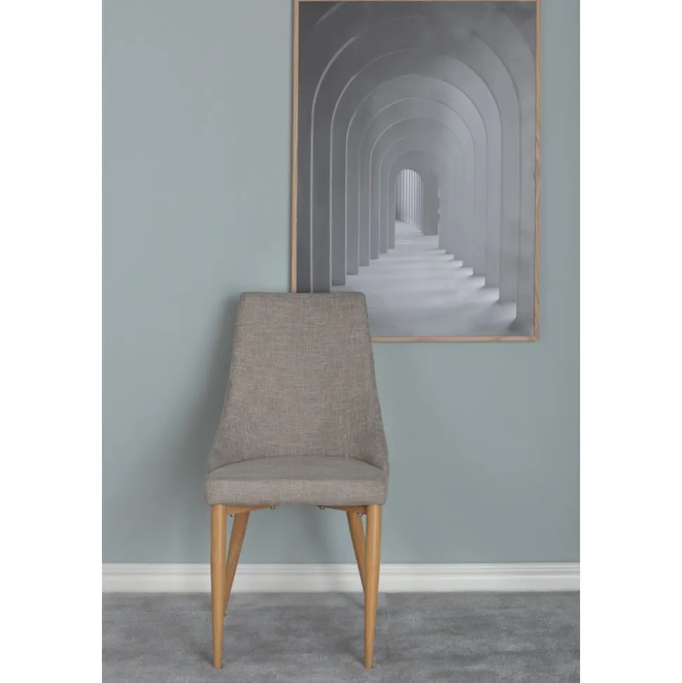 Matstol av metall och plywood, klädd med polyestertyg.