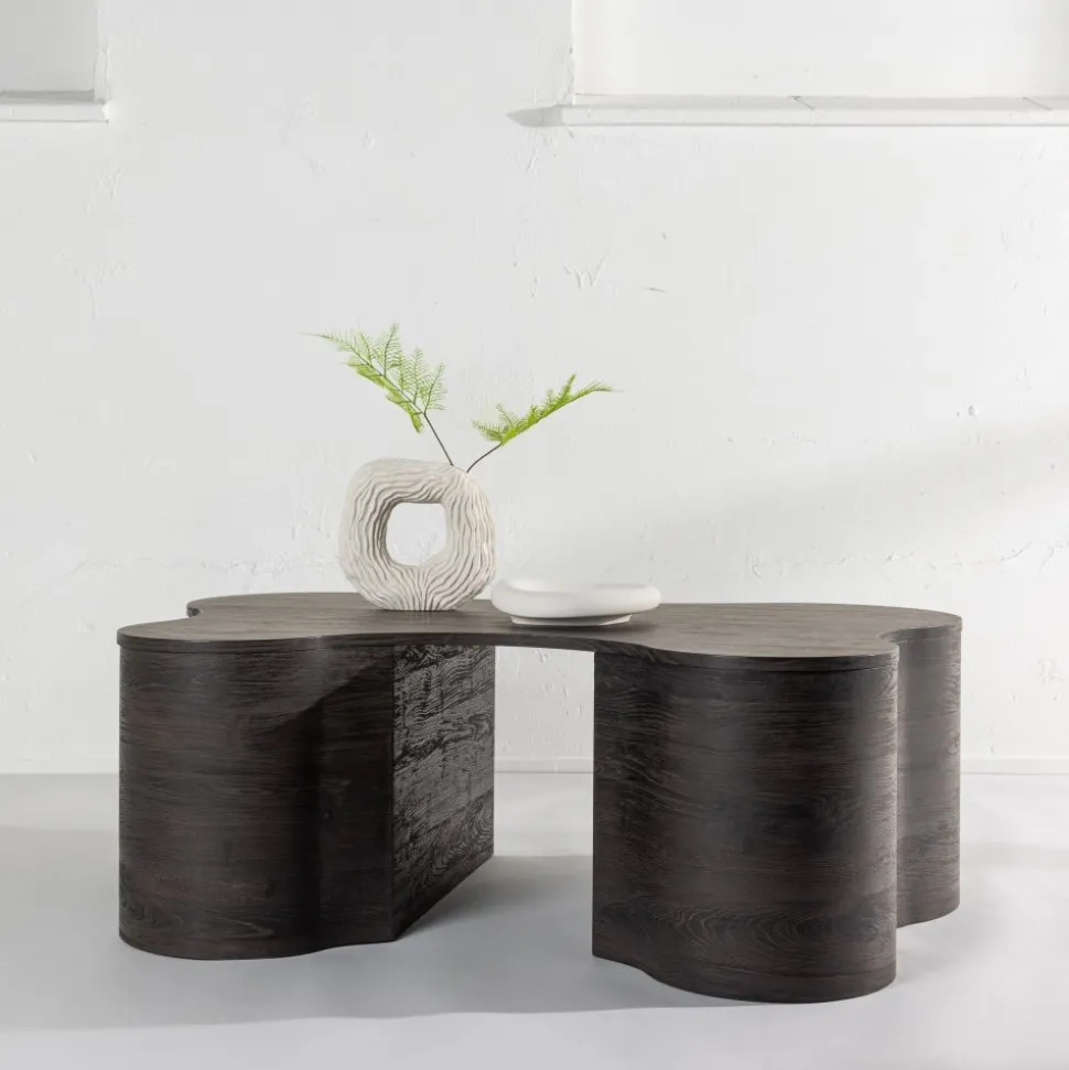 Detta är det perfekta soffbordet för dig som vill ha en modern och trendig inredning med en touch av värme. Med sin vackra moccafärg tillför det en känsla av elegans och stil till ditt . Bordets unika form och mjuka runda kanter gör det till en riktig eye-catcher som sticker ut i rummet. Tillverkat av MDF och faner är bordet både hållbart och robust. Dess stabila konstruktion gör att det tål vardagens påfrestningar och kommer att vara en pålitlig möbel i många år framöver. Bordet har den perfekta storleken för att rymma dina tidningar, fjärrkontroller och andra vardagliga föremål. Dessutom finns det gott om utrymme för att visa upp dina favoritdekorationer eller för att lägga till en kopp kaffe när du kopplar av. Soffbordet kombinerar stil, funktionalitet och hållbarhet och kommer att bli en central del av ditt vardagsrum. Ge ditt hem en modern touch med detta trendiga och unika . Levereras omonterad.