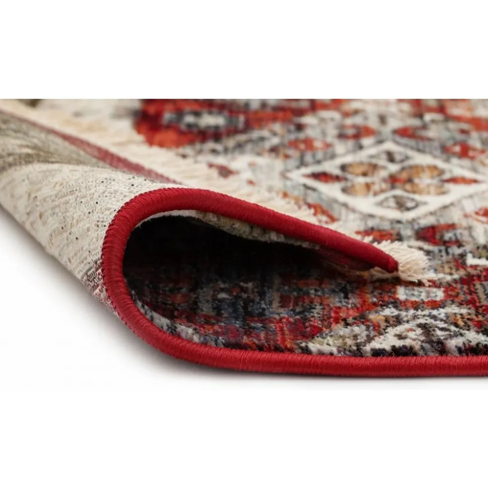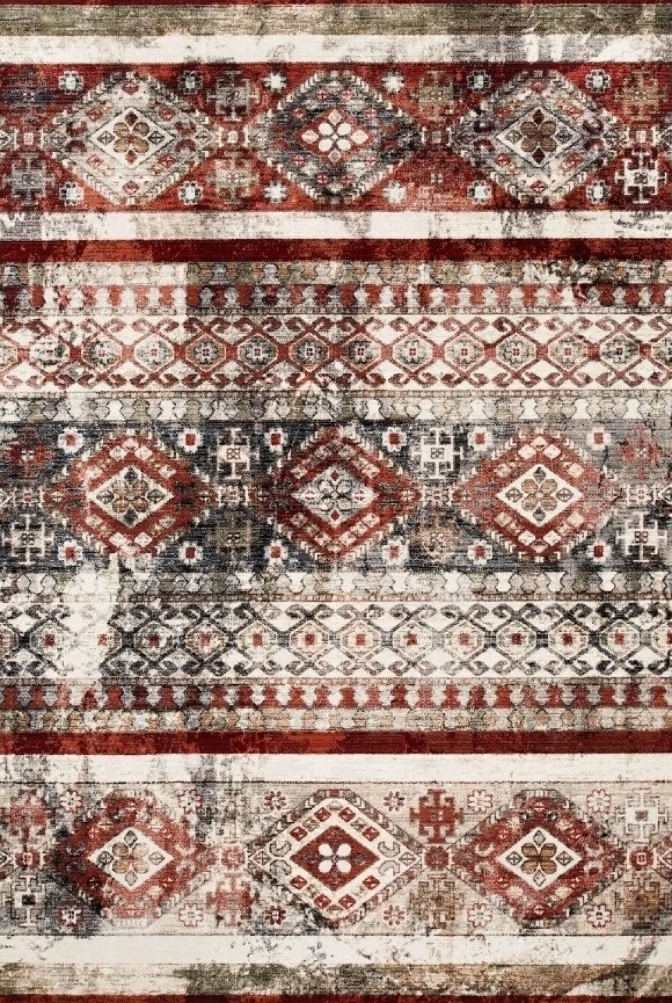 Laura Aztek har en Röd bottenfärg med matchande röd langettering. Mattan har ett klassiskt mönster i blå/röda samt creme färgade toner samt avslut i kortändarna med en snygg frans. Laura Aztek har en kort skuren lugg och är maskinvävd i 100% PP heatset. Detta gör mattan tacksam att hålla ren, eftersom smuts och fläckar inte tränger in så lätt i de korta fibrerna, samt har en härlig lyster.