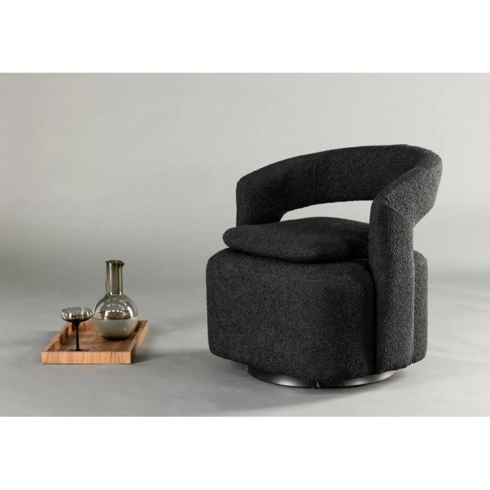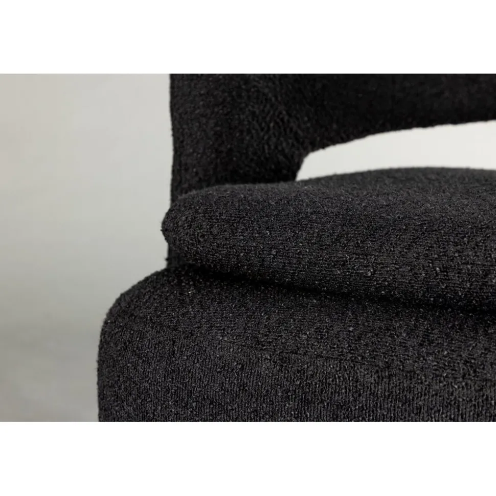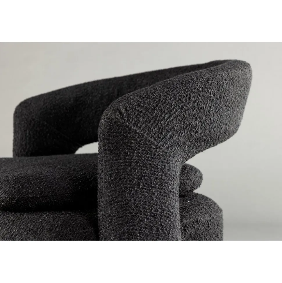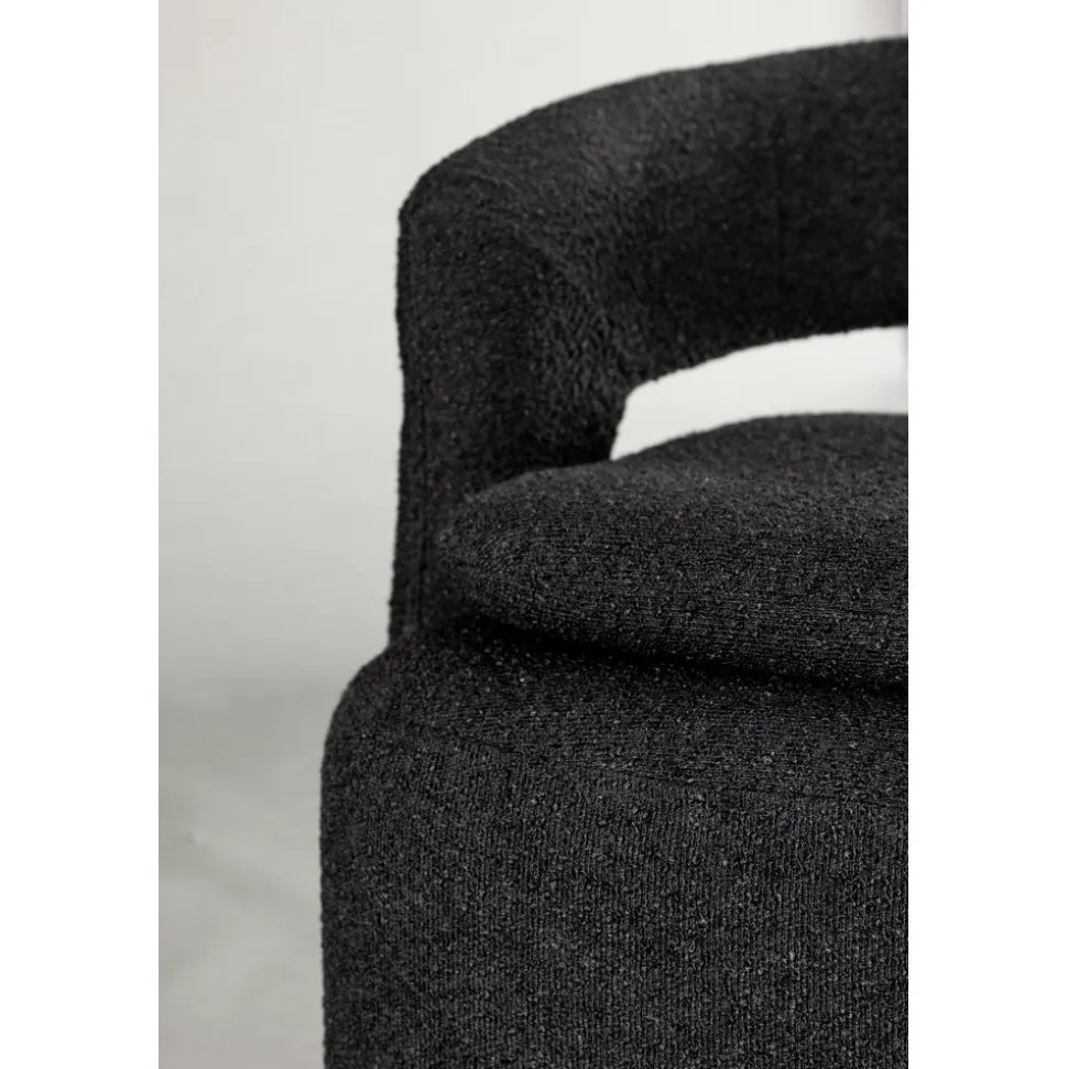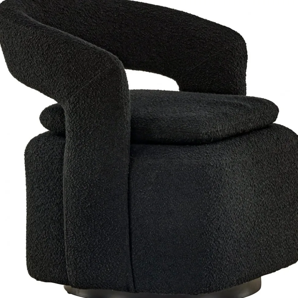 Möblera ditt hem modemedvetet och genomtänkt med en smart från serien Laurel! Den här svarta fåtöljen har en nätt storlek som gör den enkel att möblera med och den blir snabbt ett smart tillskott till inredningen. Designen är golvnära, vilket ger ett robust intryck och sitsen har en extra kudde som ger ett schysst lyft som är lika snyggt som bekvämt. Det öppna ryggslutet bidrar också till en mer modern utformning som imponerar. Fåtöljen är helklädd i svart boucletyg som bidrar till att den här fåtöljen klättrar på trendlistorna. Följ våra skötselråd så får du en smart fåtölj som kommer vara med dig länge! Levereras monterad.