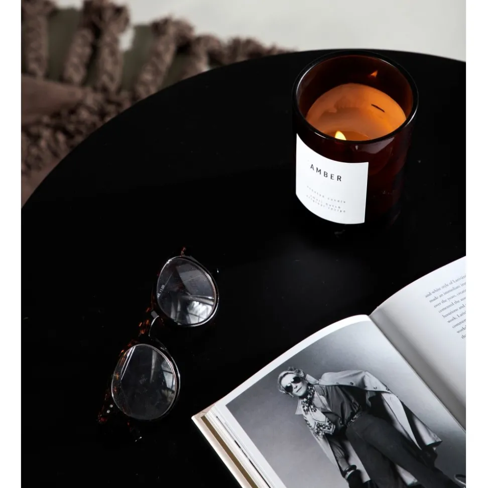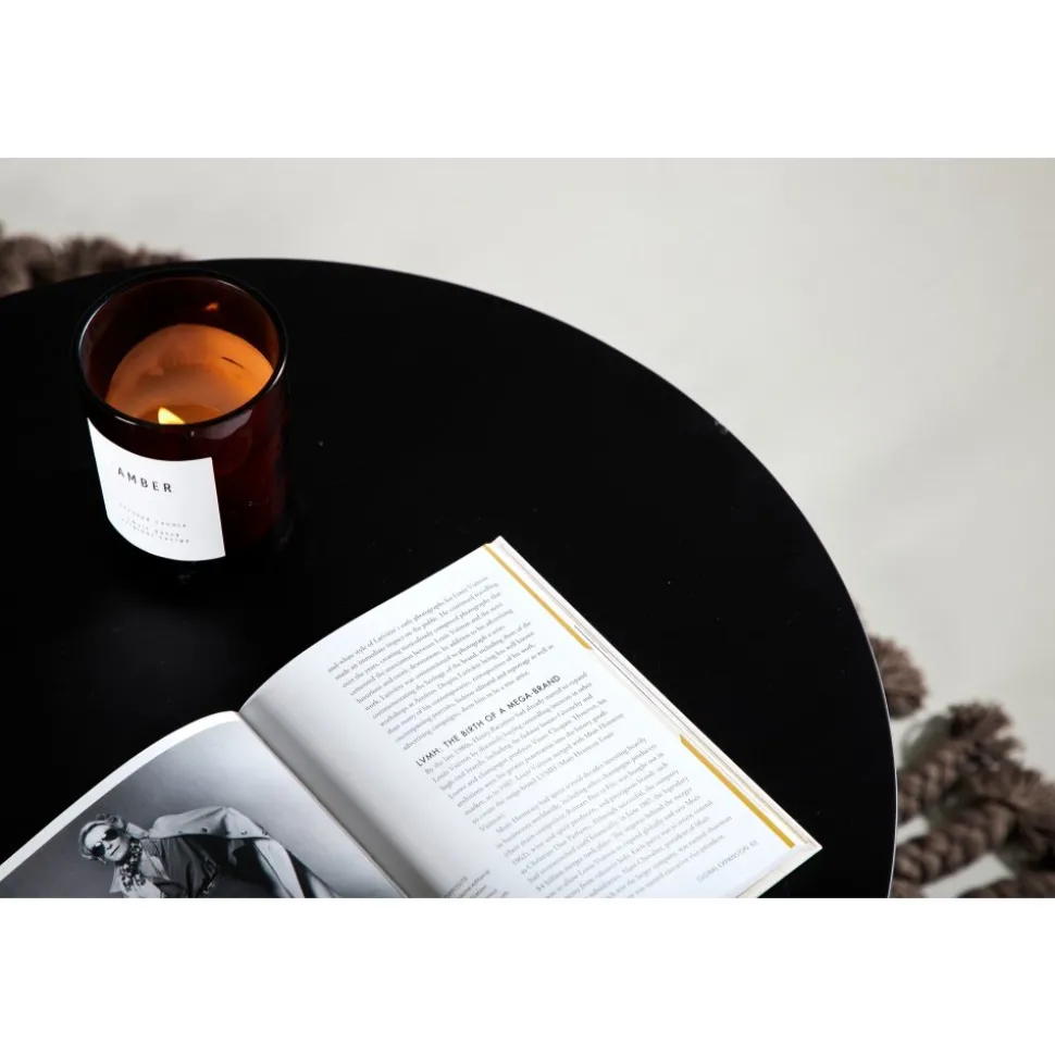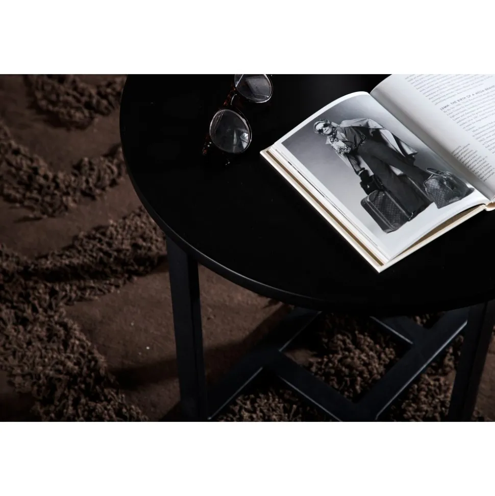 Soffbord tillverkat med en rund bordsskiva i svart MDF och smal stomme som sammanlänkas i botten. Placera ovanpå den mysiga mattan och pryd med vackra ljusstakar för att skapa en trivsam atmosfär i vardagsrummet.