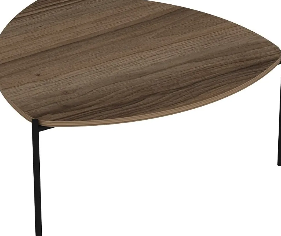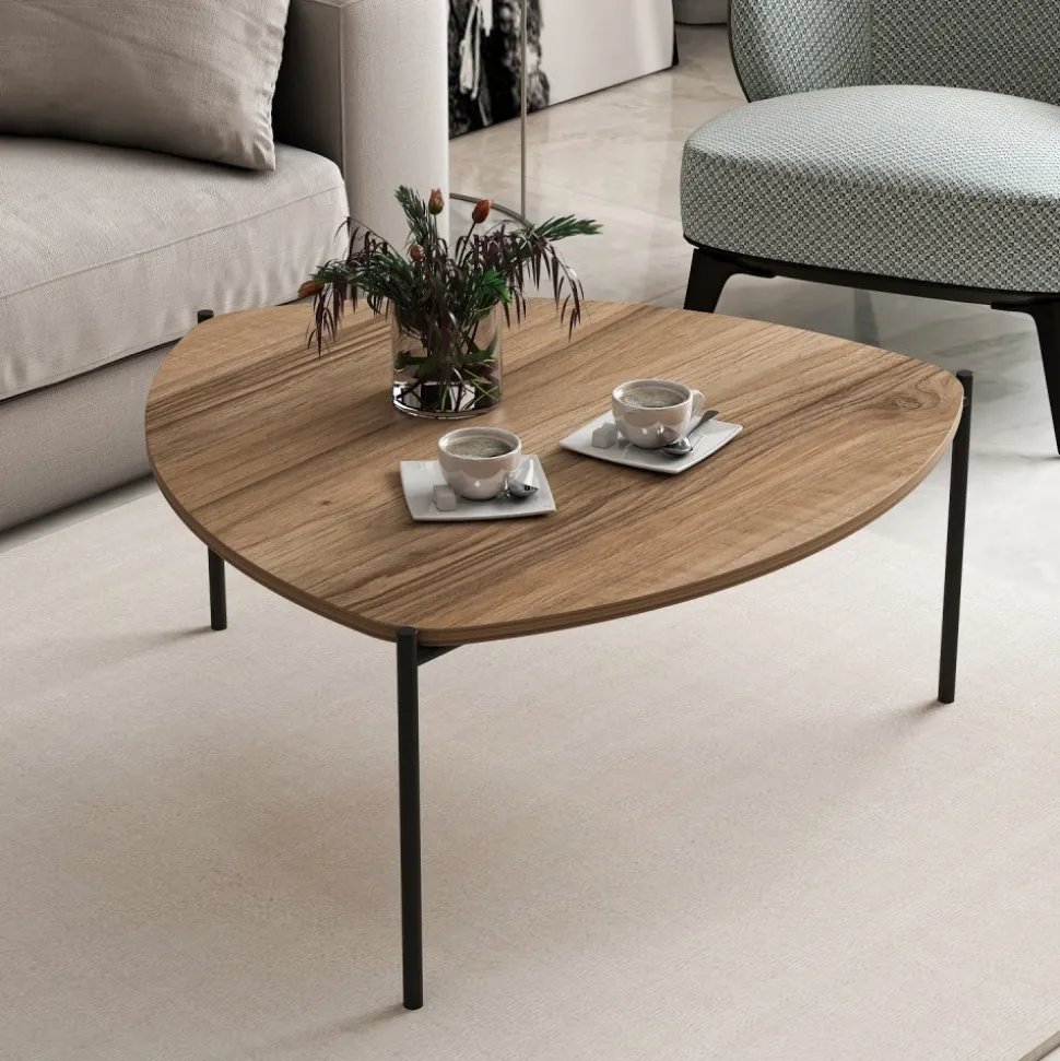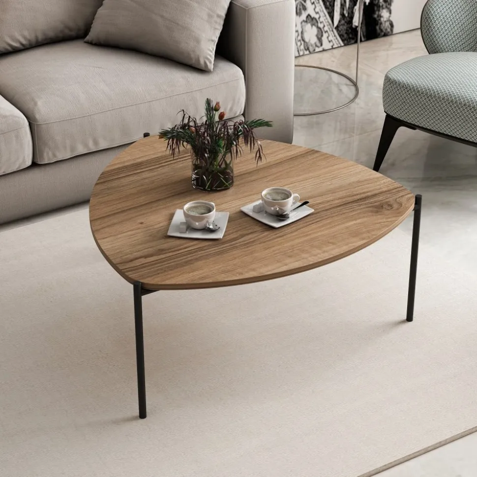 Soffbord av trä med underrede av metall.
