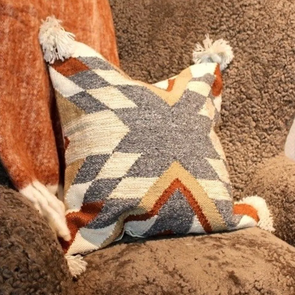 Kuddfodral med snyggt mönster och kraftig struktur på framsidan. Baksidan är enfärgat beige. Framsida i 100% återvunnen polyester. Baksida 100% bomull.