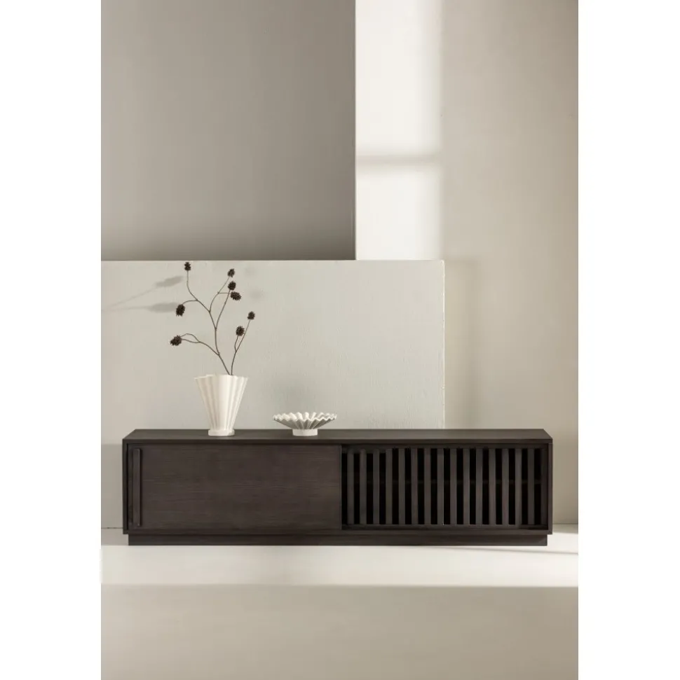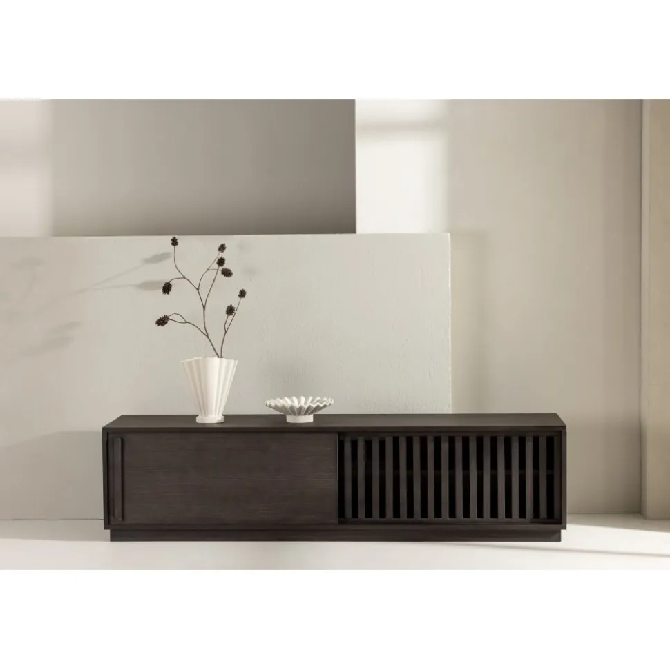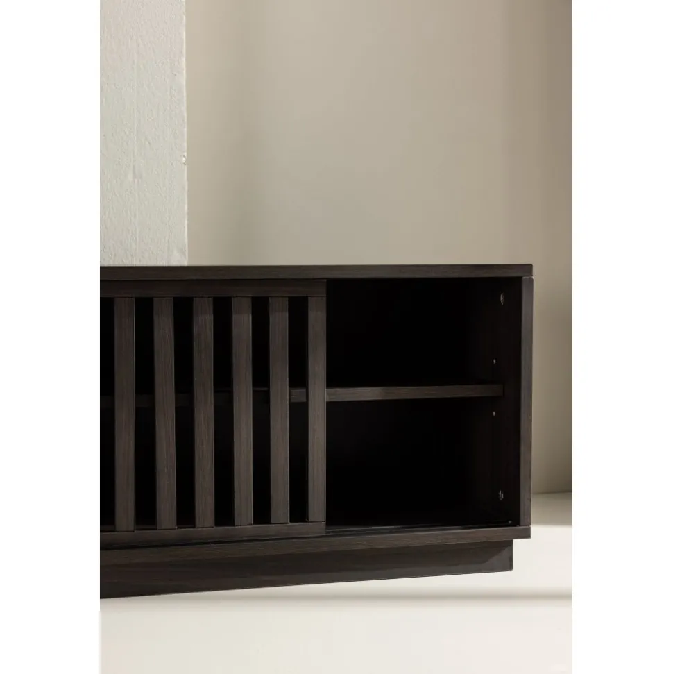 Letar du efter den ultimata kombinationen av stil och användbarhet för ditt hem? Då kommer Lugo Tv-bänk att överträffa dina förväntningar. Med dess sofistikerade melaminyta i den varma mocka/mörkbruna nyansen, kommer denna genast att skapa en inbjudande atmosfär i ditt vardagsrum! Men viktigt att tillägga är att Lugo inte bara är en fröjd för ögat – dess praktiska design är också ett mästerverk. Den smarta skjutdörren, som döljer ett generöst hyllplan, ger enastående förvaringsutrymme för alla tillbehör till Tv-hörnan. Den ena dörren är heltäckande, medan den andra pryds av ett elegant ribbat galler, som tillför en modern touch av skandinavisk stil.Pryd Tv-bänken med dina favorithögtalare och vackra ljusstakar för att få den perfekta mysfaktorn hemma. Nu kan du skapa ett utrymme där skönhet och funktion går hand i hand, och där du kan njuta av varje ögonblick i ett hemmamiljö som är lika praktisk som den är elegant! Levereras omonterad.