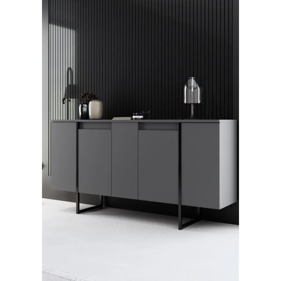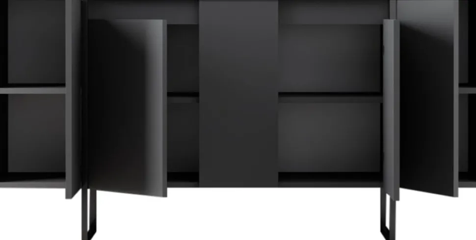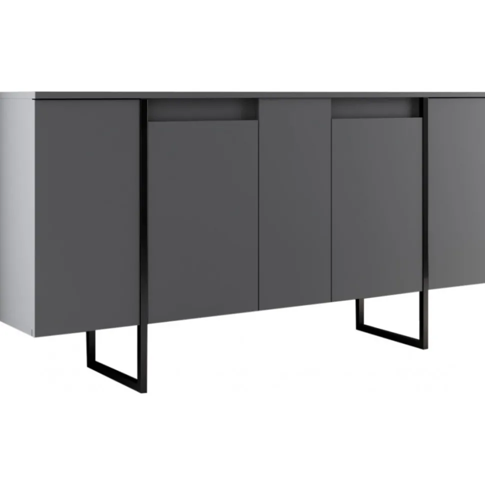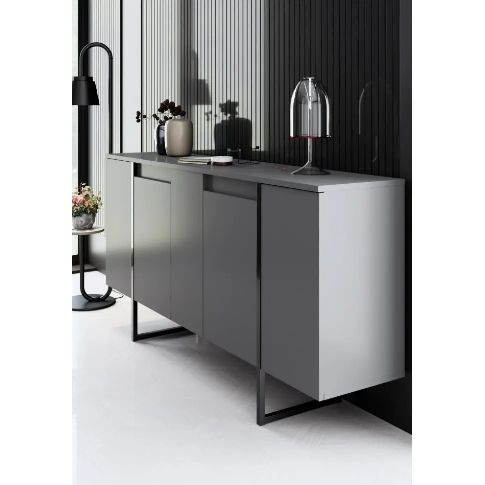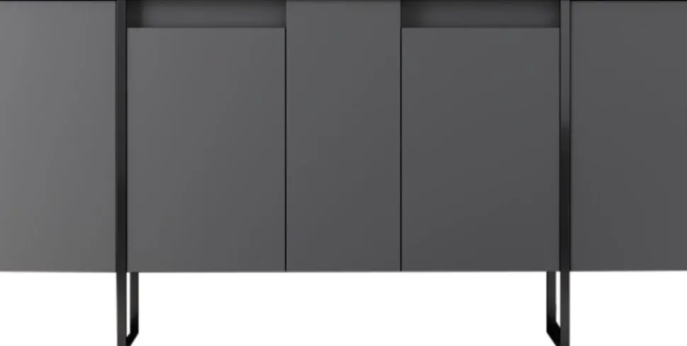 Skänk av spånskiva med ben av metall.
