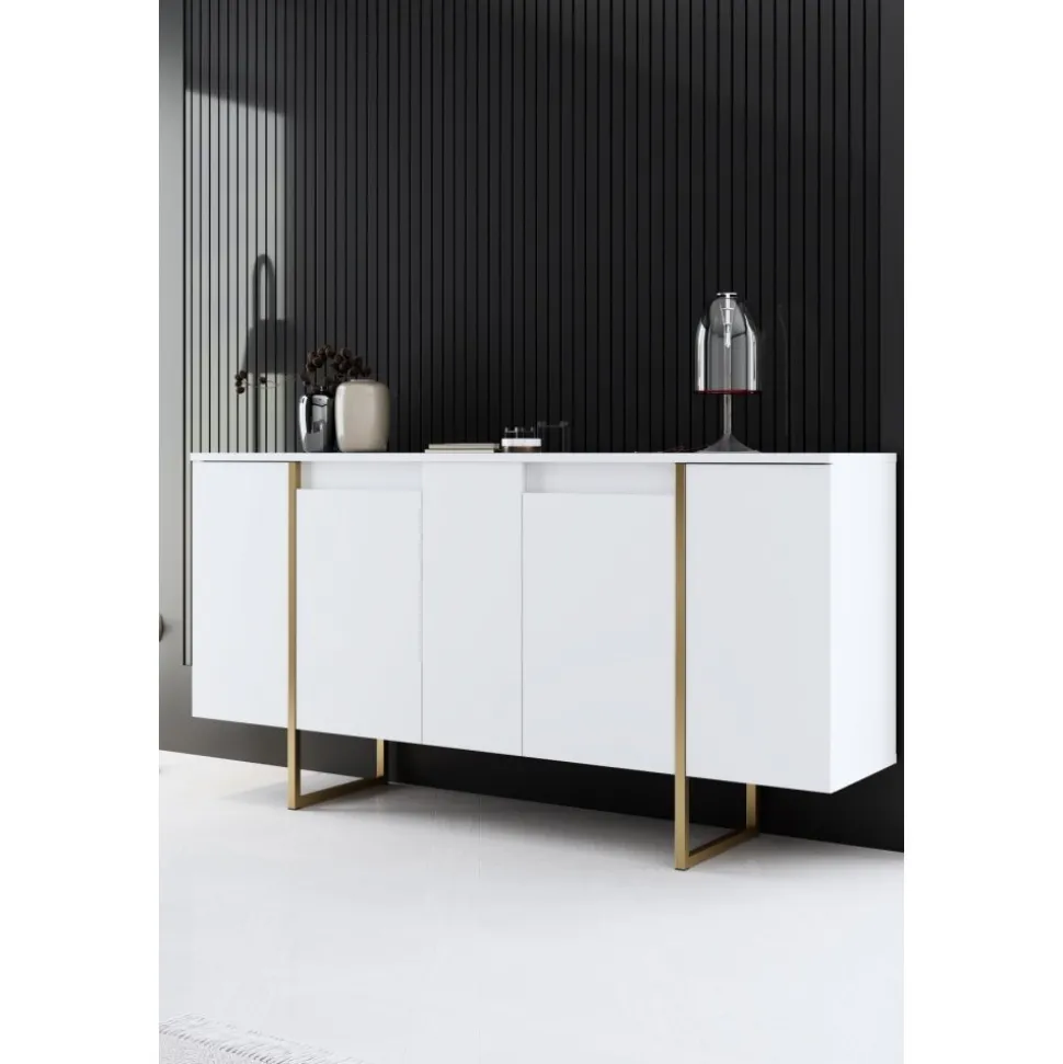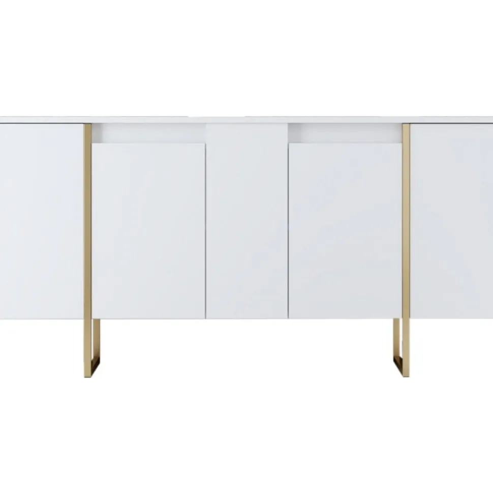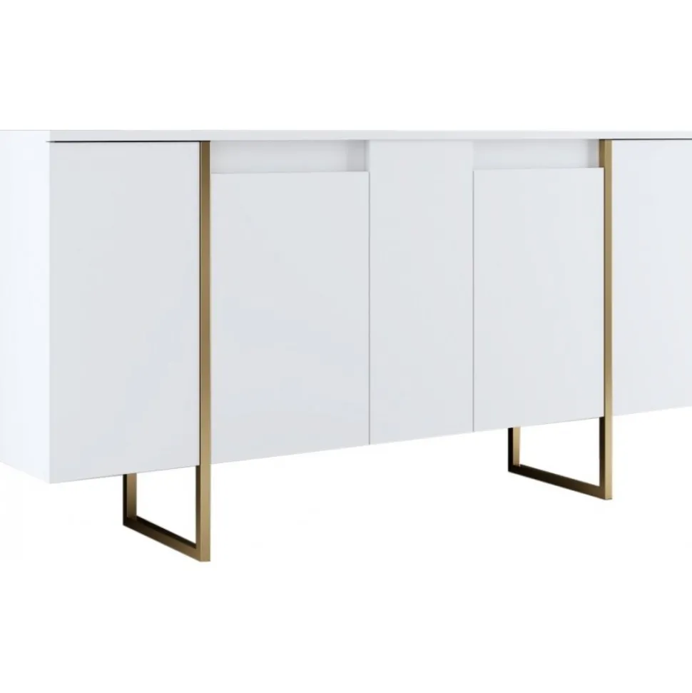 Skänk av spånskiva med ben av metall.
