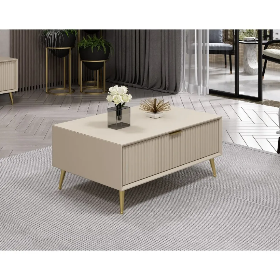 Soffbord i Valnöt 90 x 90 cm – Podium + Textilrengöring för möbler