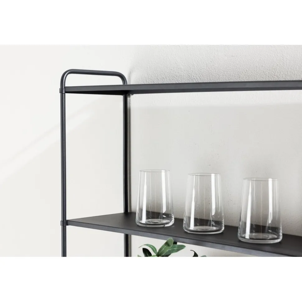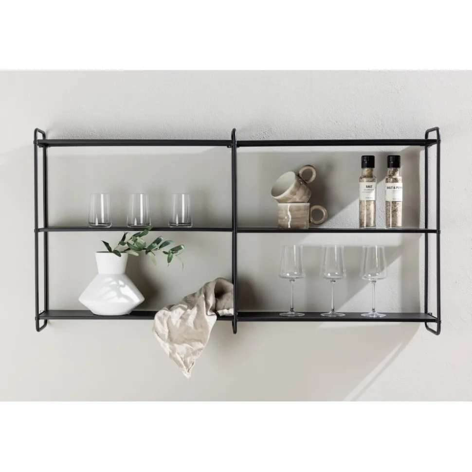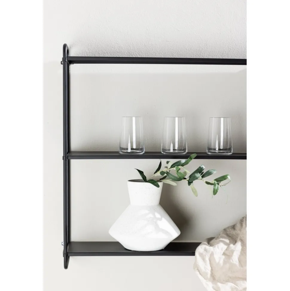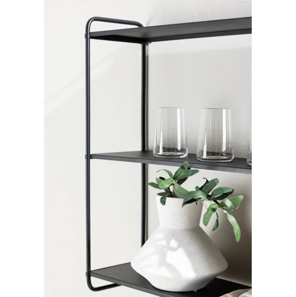 Upplev tidlös elegans och smart förvaring med vår stilrena i svart järn från serien Lyon! Den här svarta pulverlackerade järnhylla kommer inte bara att organisera ditt utrymme, utan också låta dig uttrycka din personlighet på ett subtilt och elegant sätt. Med en design som är tidlös och minimalistisk passar Lyon vägghylla perfekt in i en mängd olika inredningsstilar. De rena linjerna och neutrala färgen smälter samman sömlöst med din befintliga inredning, vilket skapar en atmosfär av enkel elegans. Tre hyllplan ger dig gott om utrymme att organisera och visa upp dina favoritprylar. Ordning och reda har aldrig varit så enkelt – från böcker till växter till personliga skatter, allt har sin plats på Lyon hyllan. Häng upp Lyon på väggen och se hur den förvandlar rummet till en mysig oas. Lyon vägghylla är mer än bara förvaring – den är en investering i stil och funktion. Den finns även i en beige kulör och kommer i två olika storlekar för att bäst anpassa sig efter dina önskemål! Levereras omonterad.