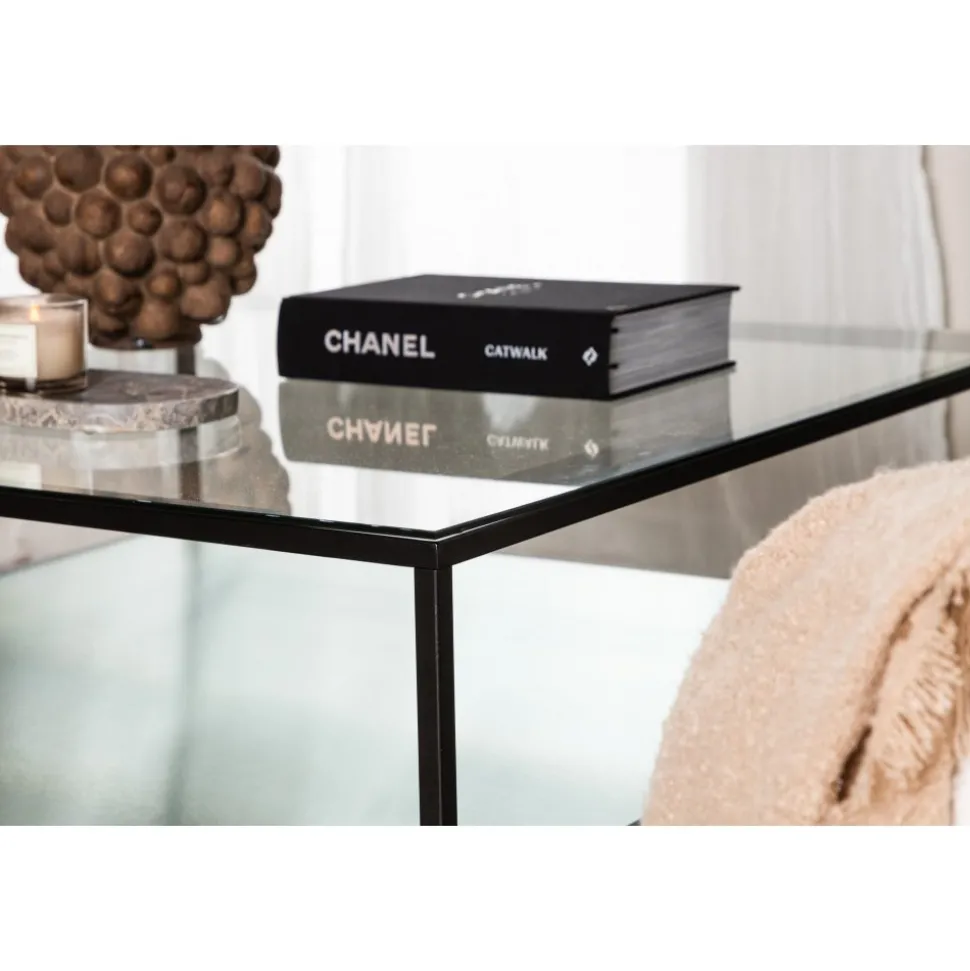 Soffbord i en iögonfallande design med robust underrede i svart metall och stilrena bordskivor i glas. Det finns även en smart hylla för enklare förvaring eller snygga dekorationer. Det här soffbordet ger en dekorativ tyngd åt rummet och tillför en modern känsla i ditt hem. Placera framför soffgruppen på en mjuk lurvig matta så får du en komplett plats till nästa fredagsmys.