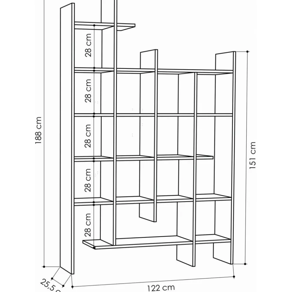 Bokhylla av melaminbelagd spånskiva.