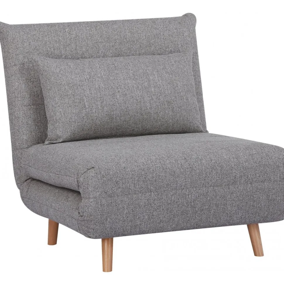 Bäddfåtölj av björkträ med klädsel av polyester. Levereras omonterad.