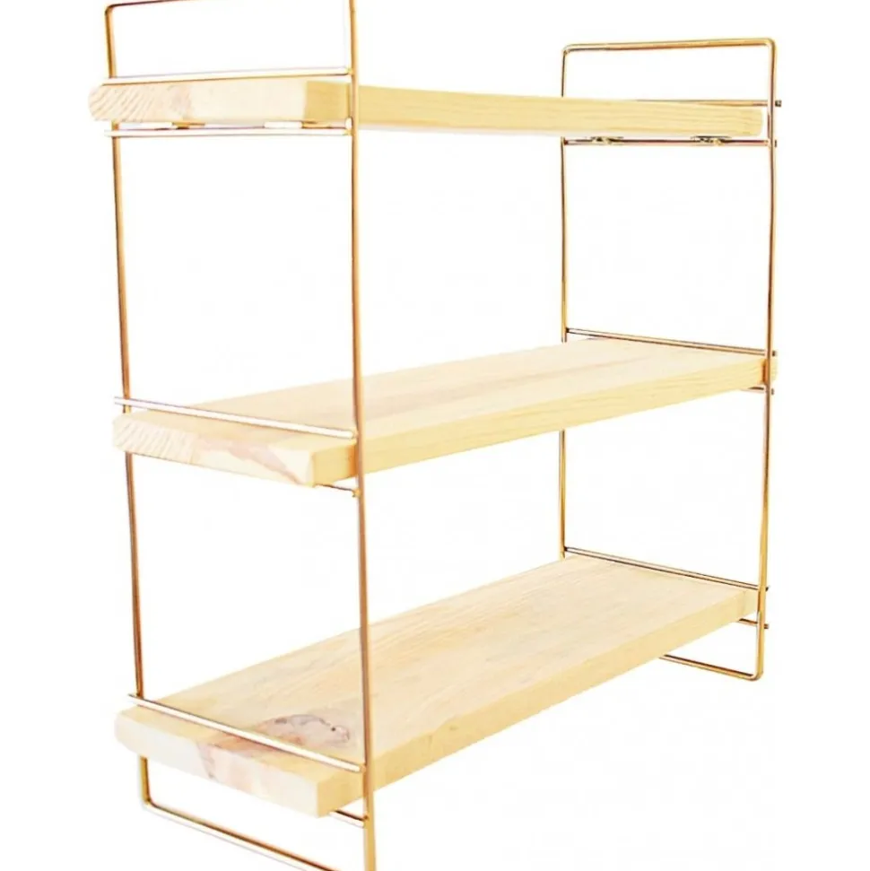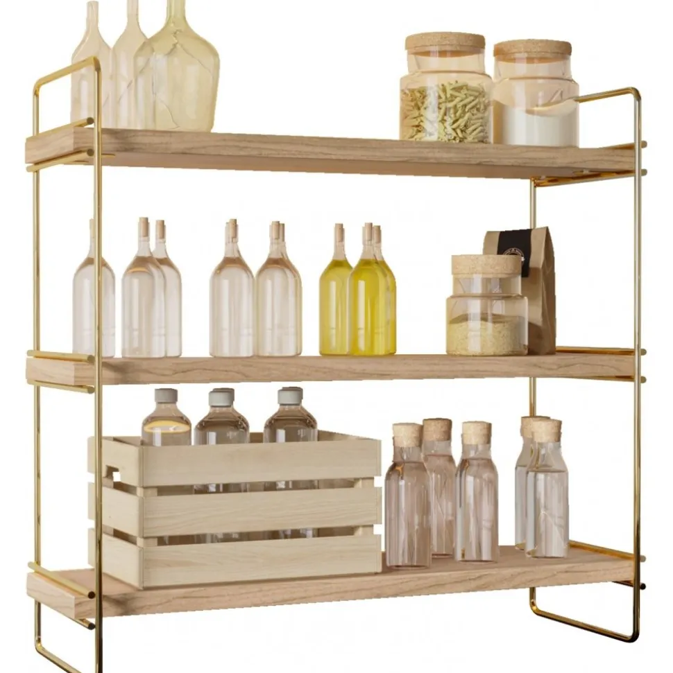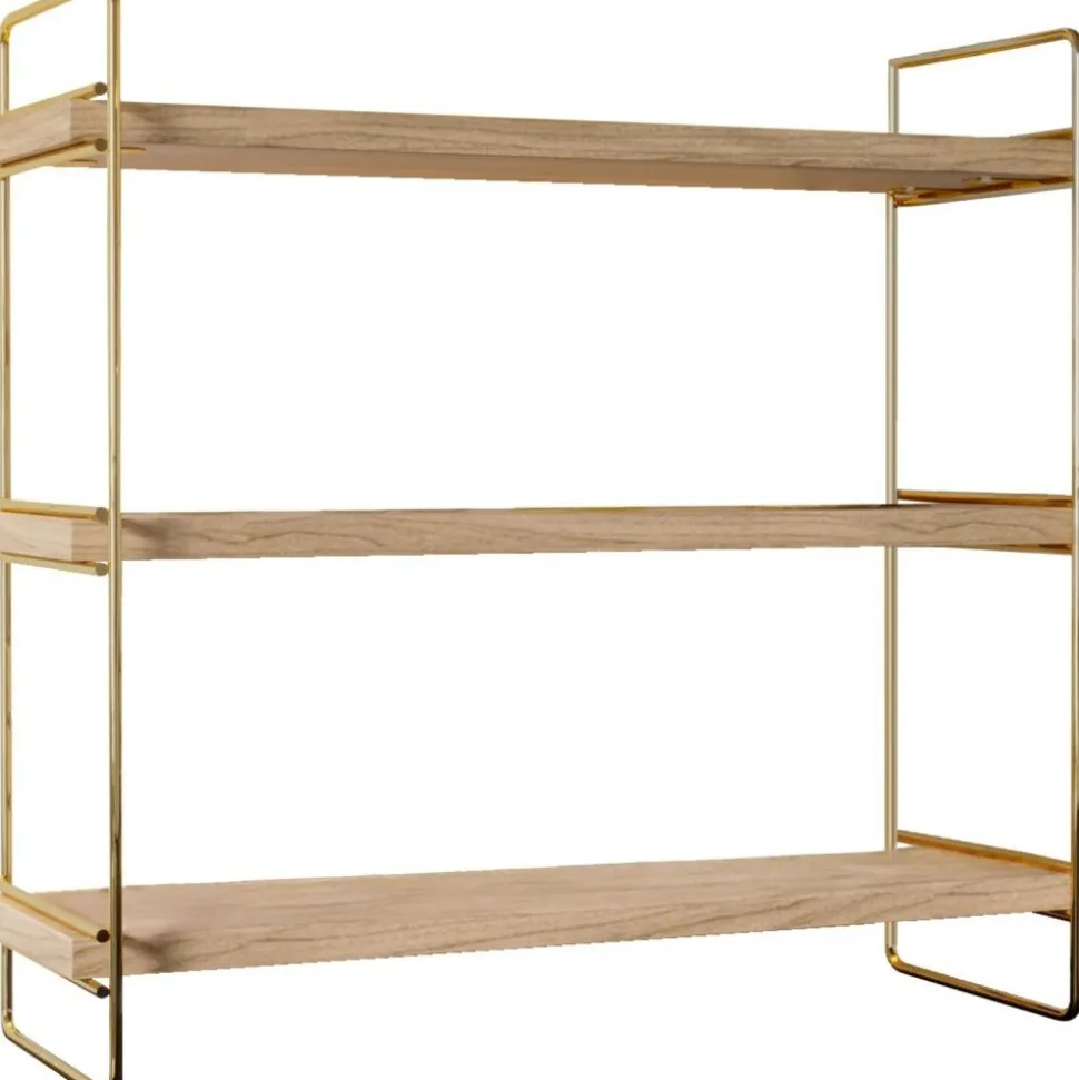 Vägghylla av trä och metall. Eftersom produkten innehåller obearbetat trä kan produkten skilja i nyans och mönster mot bilden.