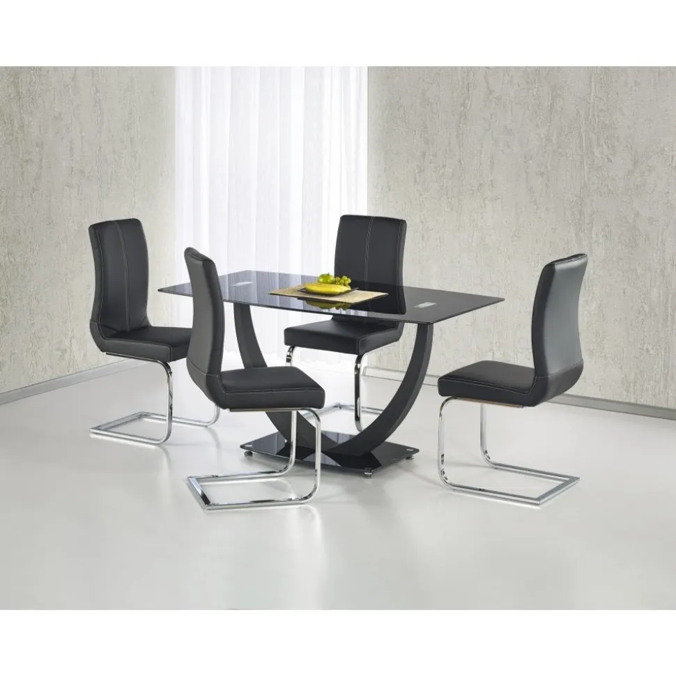 Avery är ett perfekt val för den moderna inredaren. Matbordet har en bordsskiva av svart glas, som ger en elegant känsla och är lätt att hålla ren. Bordet är tillverkad i robust svart stål, vilket säkerställer både stabilitet och hållbarhet.
