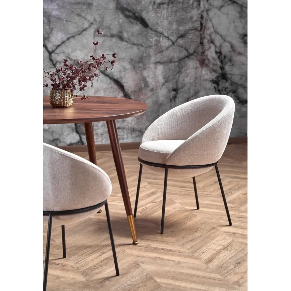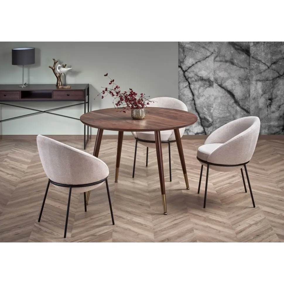 Matbord av valnötsfanérad MDF. Stadiga ben i metall som är värmebehandlade med valnötsytskikt.