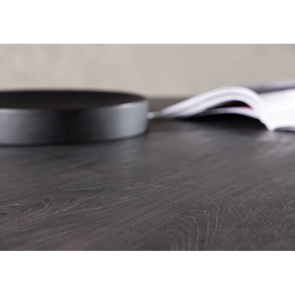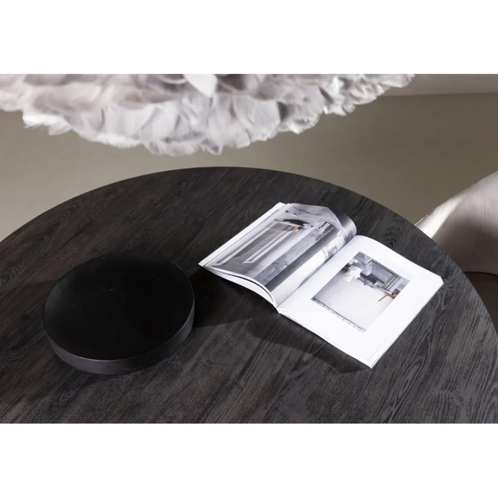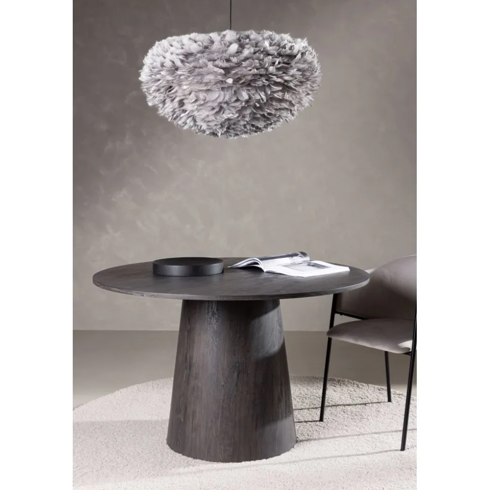 Matbord som imponerar med sin Skandinaviska design och smakfulla utformning. Bordet har en genomgående helhetsdesign i svart MDF med en tunn, rund toppskiva och en vriden cylinderformad stomme som är centrerad under bordets mitt. Kulören är tidlös och synliggör fortfarande materialets mönster som ger liv och rörelse till bordet. Skapa ett stilrent blickfång i hemmets hjärta – här hamnar ingen på kanten.