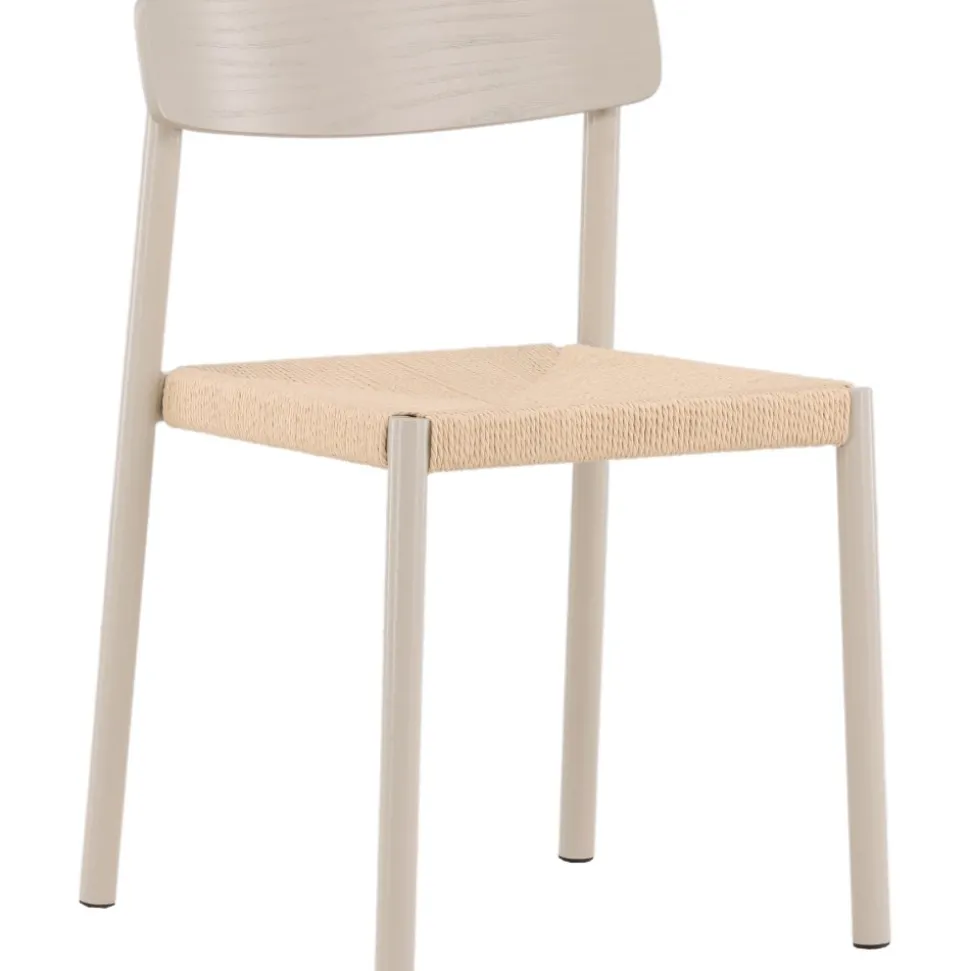 Möblera hemmets hjärta stilrent och inbjudande! Detta är en klassisk i smäcker beige kulör, med en rygg tillverkad i greige trä och en sits i slitstarkt beige rep och lätt utsvängda ben i metall. Den här stolen, i traditionellt utförande och skandinavisk design, ger en modern känsla till ditt hem och är enkel att flytta omkring. Matcha stolen med ditt favoritbord så får du en perfekt plats för middagar med vänner och familj!