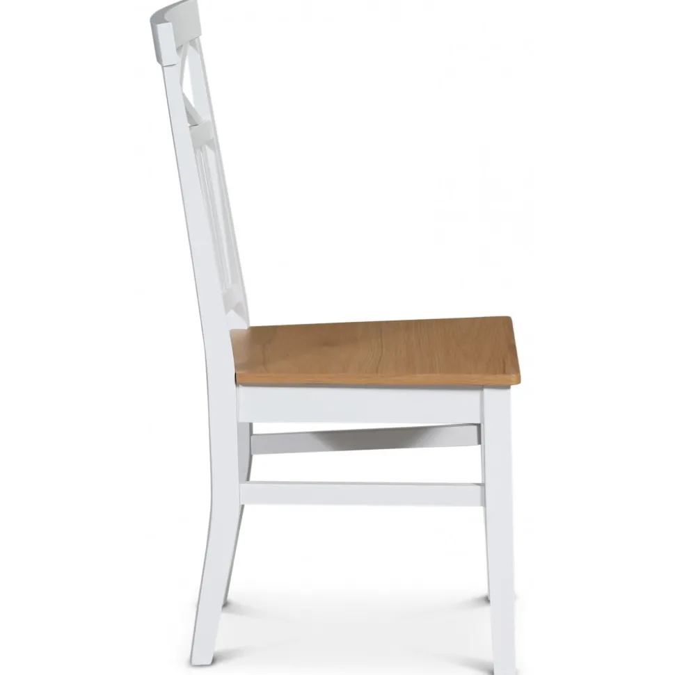 Klassisk tillverkad i massivt vitlackat trä för en elegant och tidlös stil. Stolen har en sits av stryktålig oljad ekfaner, vilket ger både hållbarhet och en varm, naturlig känsla. Denna är den perfekta matchningen till våra Fårö och Dalarö matbord, och skapar en enhetlig och inbjudande atmosfär i ditt hem. Designad med både komfort och estetik i åtanke, gör den sig utmärkt i alla matrum eller kök.