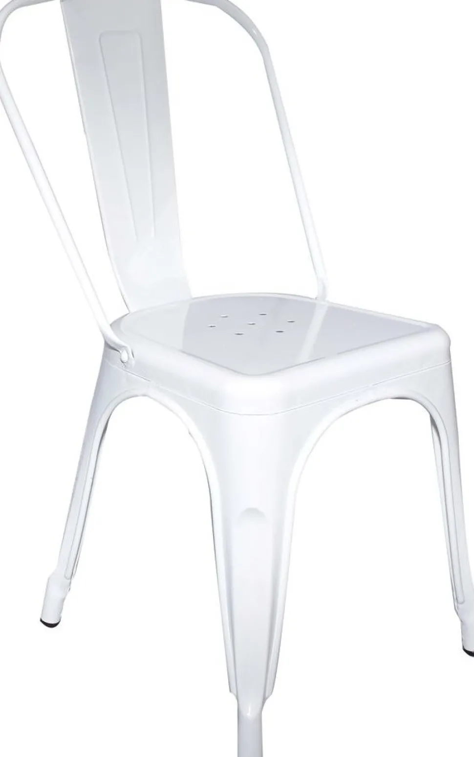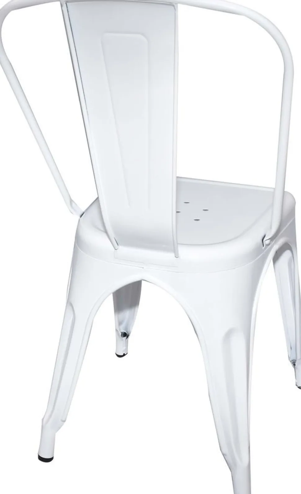 En med en industri design. Stolen är tillverkad helt i metall med en vit högblank lackering.