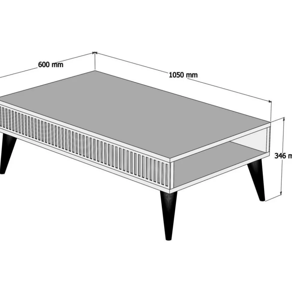 Soffbord av melaminbelagd spånskiva.