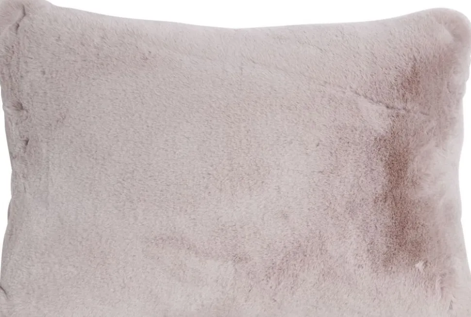 Kuddfodral mjukis i ljusrosa pälsliknande material, 100% polyester.