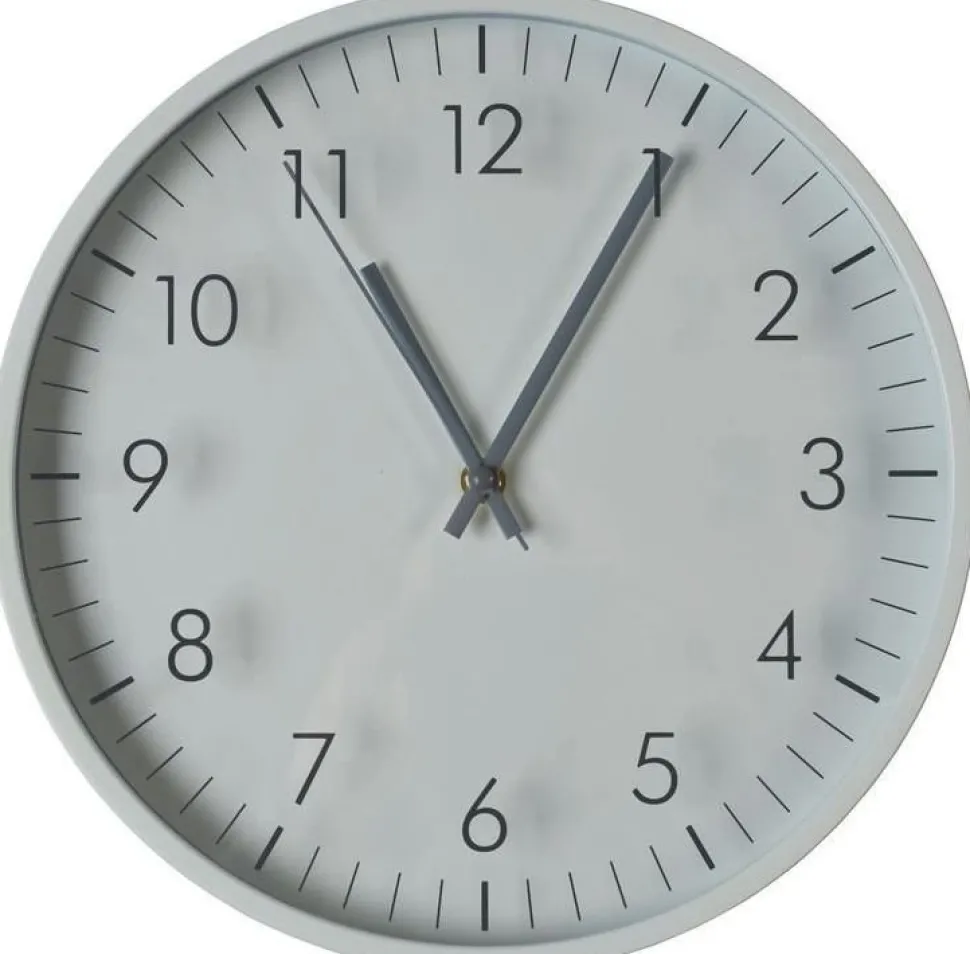 Klocka i vitt med svarta visare och siffror. Batteri ingår ej.