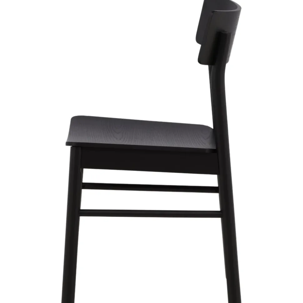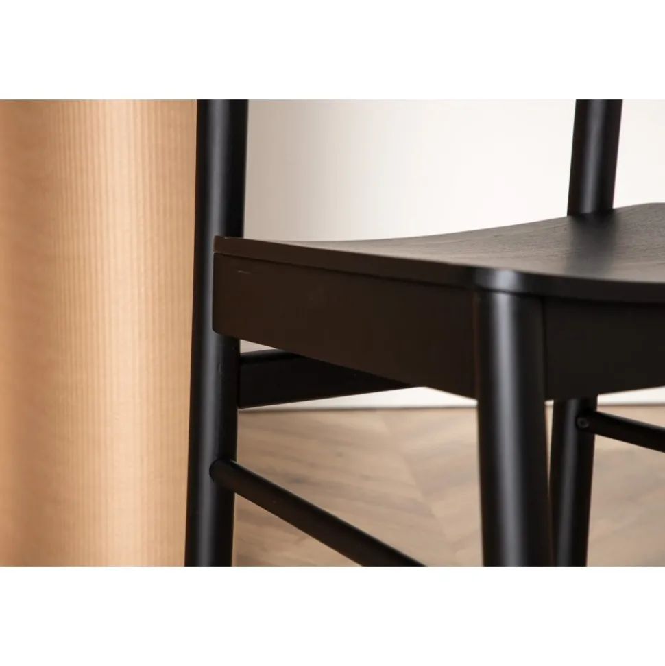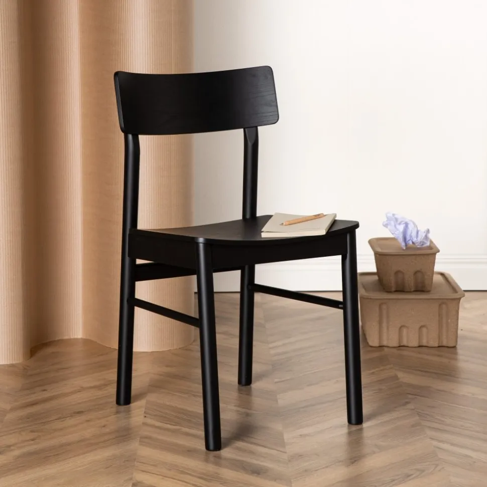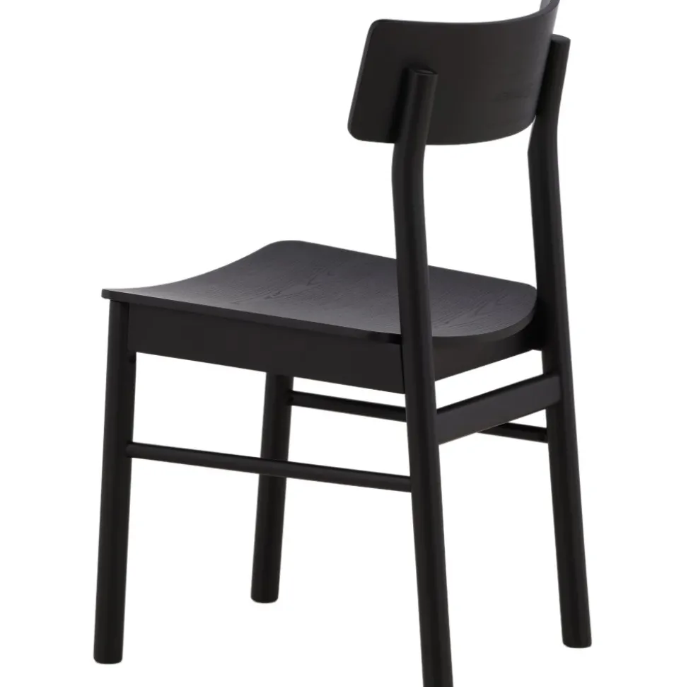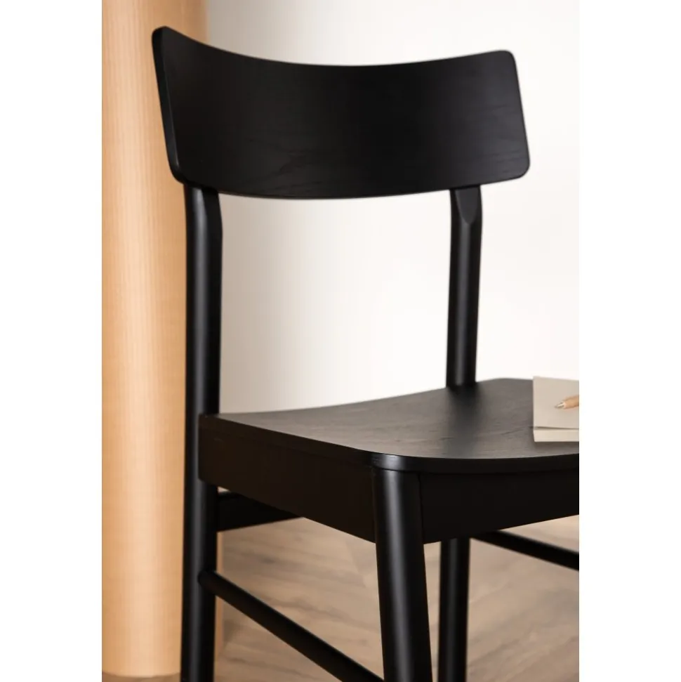 Klassisk i genomgående svart kulör som aldrig går ur tiden! Den här matstolen är tillverkad i björk och plywood i en askig svart finish. Stolsryggen är lätt rundad och benen har raka nordiska former för en mer traditionell look. Matcha med ett snyggt matbord så får du en komplett matgrupp till dina trivsamma måltider framöver! Levereras omonterad.