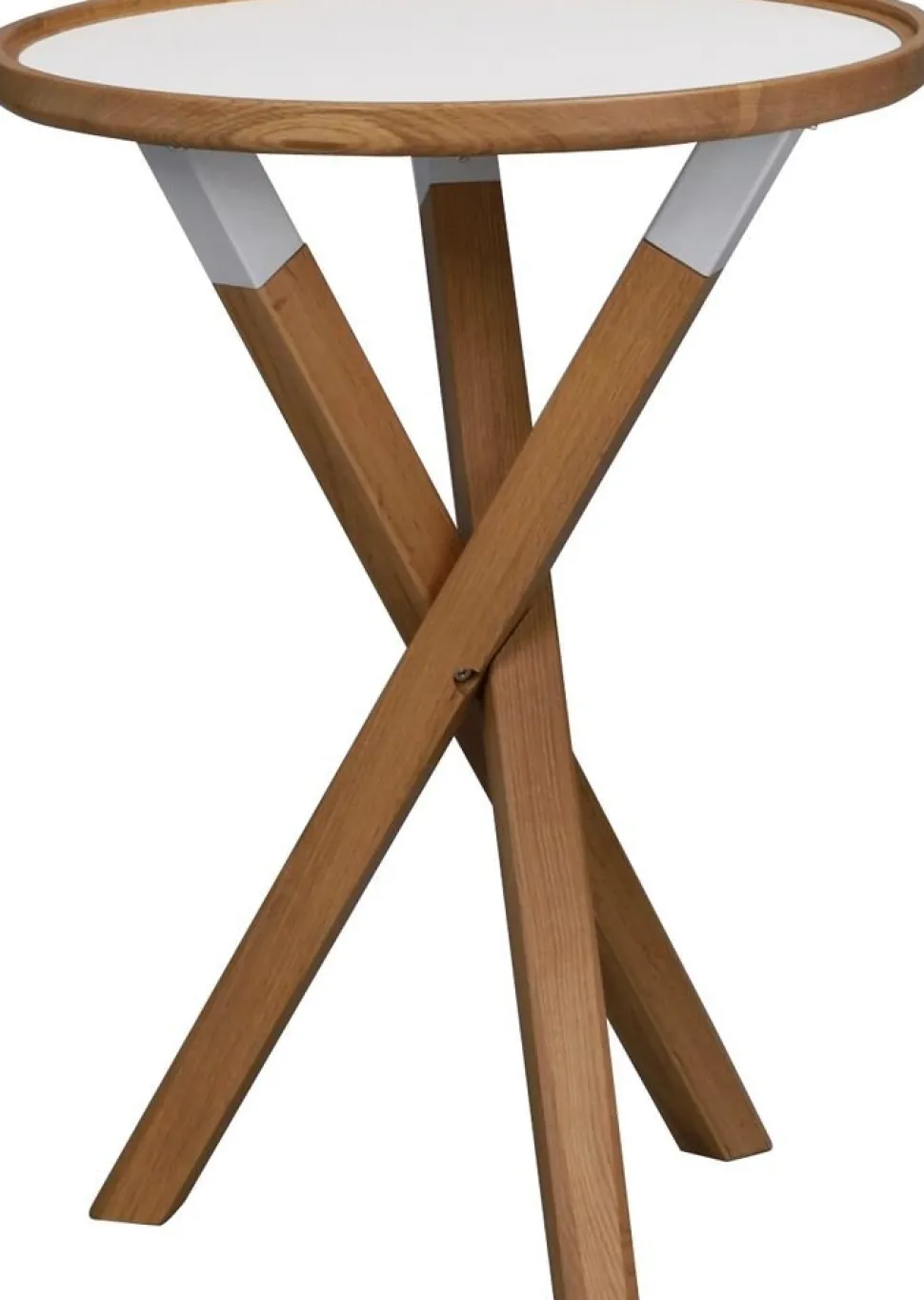 Morris soffbord / lampbord med vit skiva och underrede i ek.