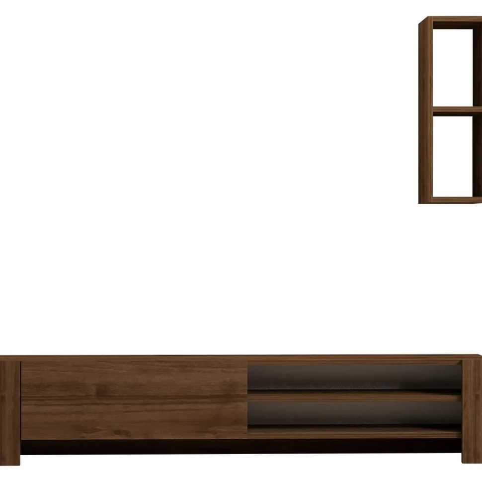 Vägghyllan som ingår i setet erbjuder extra förvaringsutrymme för dekorativa föremål eller böcker, så att du kan anpassa ditt utrymme och visa upp din unika stil.