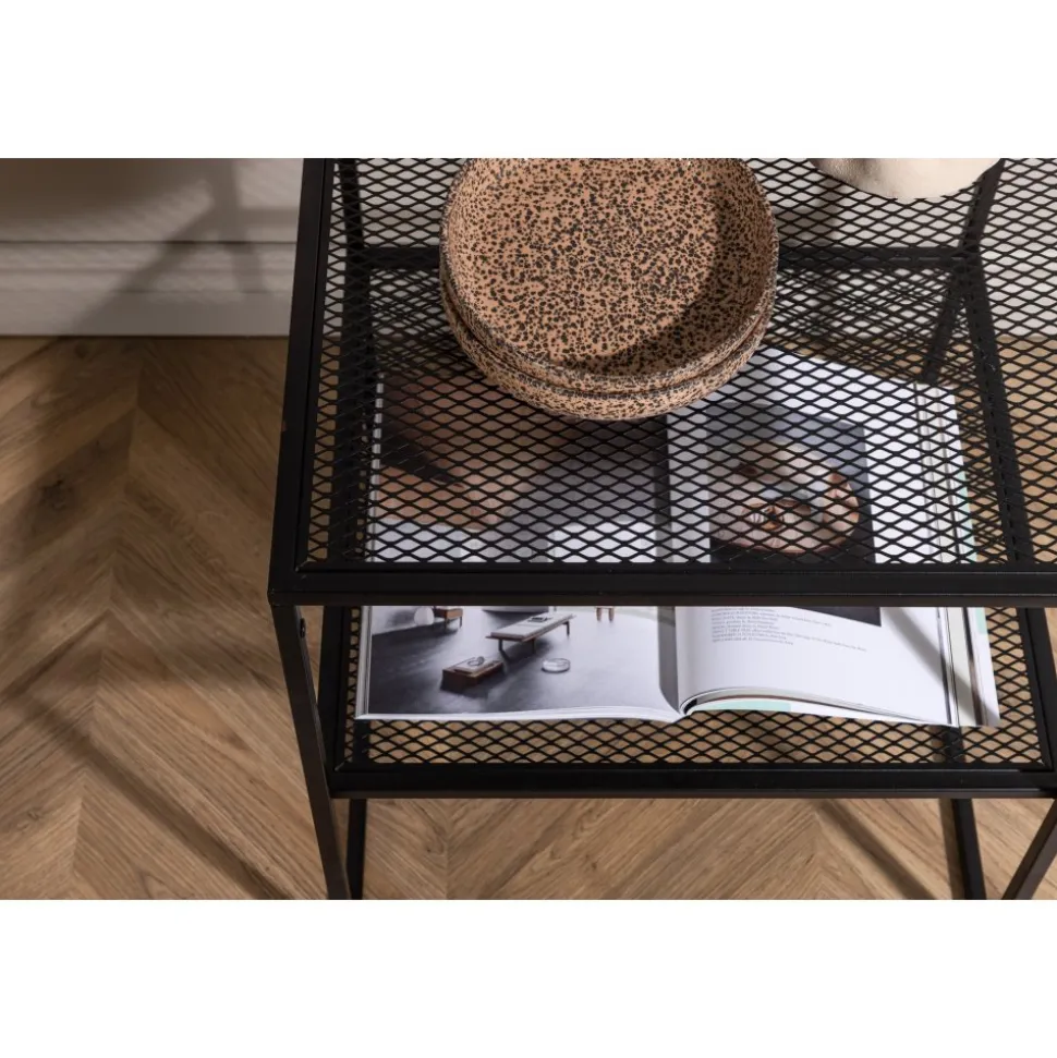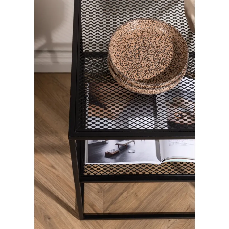Modernt och praktiskt i svart stål med industriellt uttryck och rak design. Med sina stilrena former tillför bordet en modern och luftig känsla till rummet och är otroligt användbar både som avlastningsyta, piedestal eller sidobord. Den kvadratiska och nätta storleken gör bordet lätt att placera och flytta runt i hemmet. Det finns även ett smart hyllplan i rutnät som fungerar utmärkt för enklare förvaring eller dekorationer.