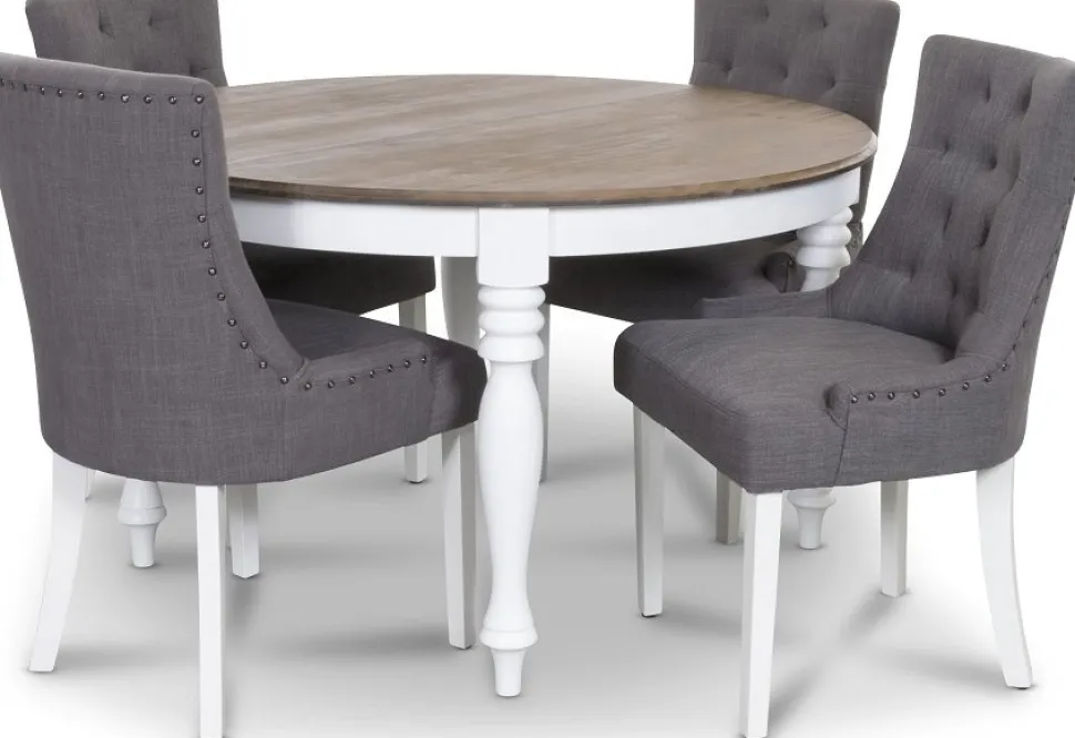 New England inklusive 4 st Tuva matstolar i grått tyg: