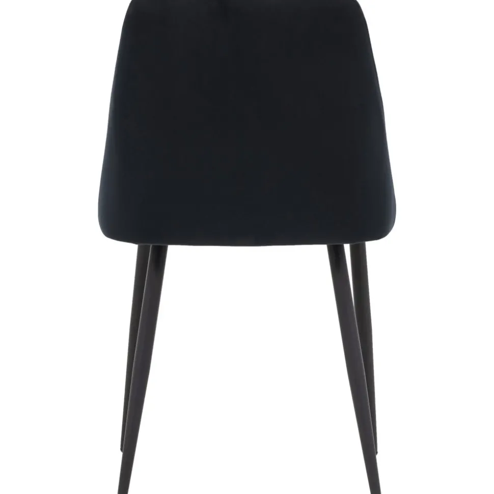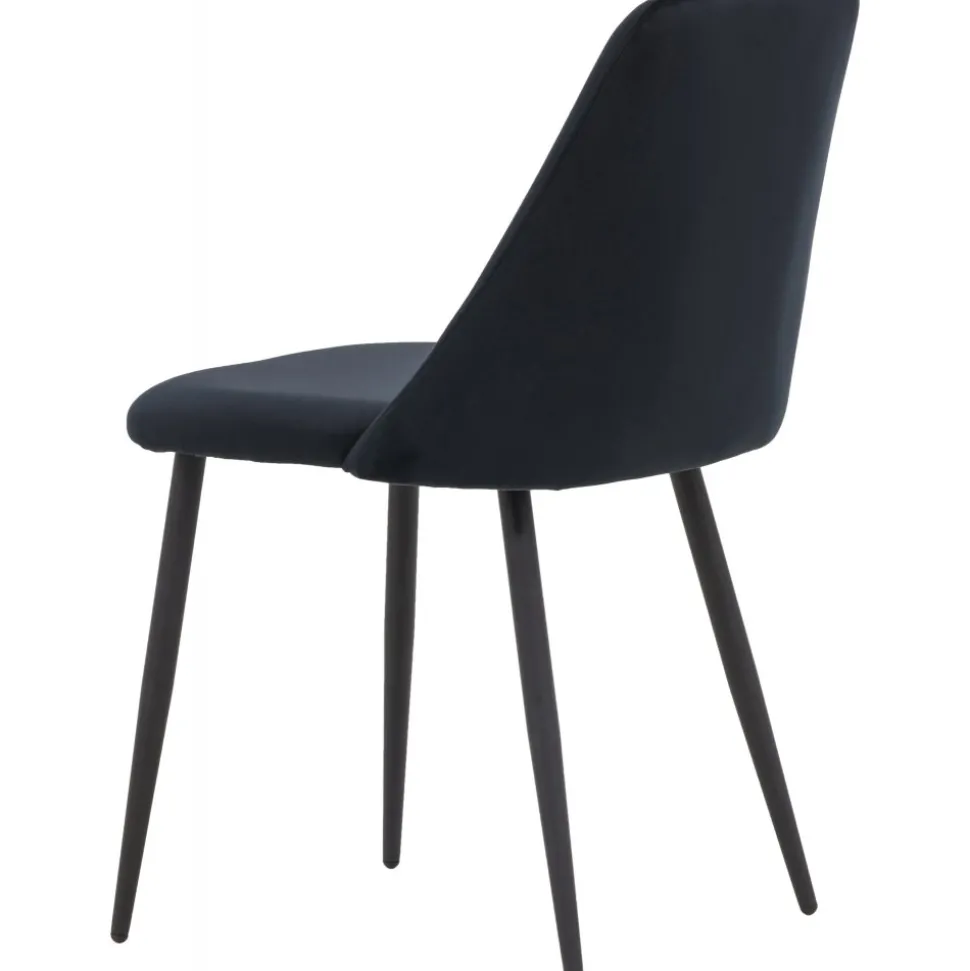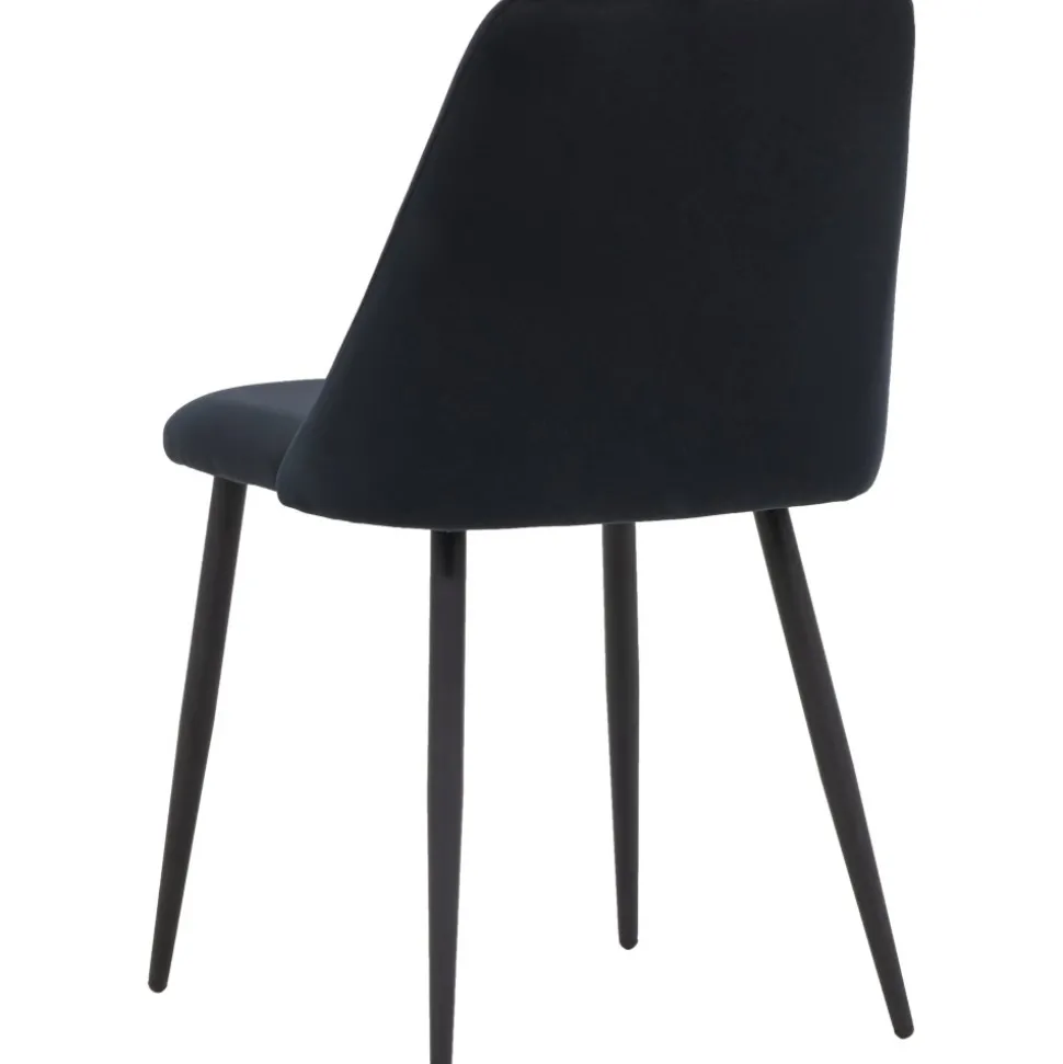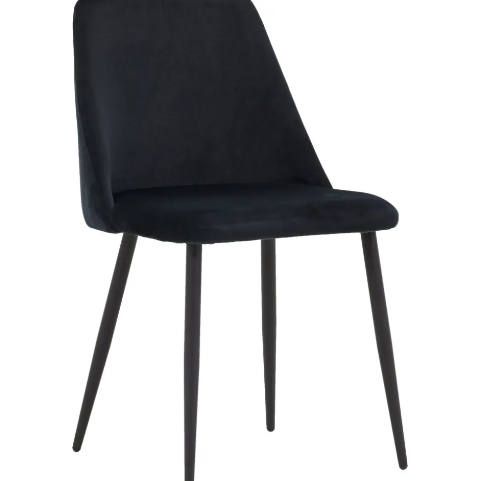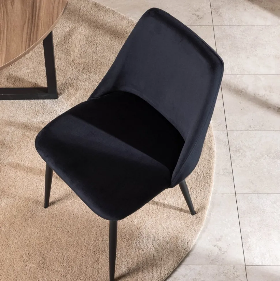 Matstol med helklädd sits i svart sammetstyg och stolsben i matchande svart kulör. Här får du en som skapar ett lyxigt skimmer till rummet och bidrar till en inbjudande och modemedveten atmosfär. Det ska kännas skönt att slå sig ner för en smarrig måltid!