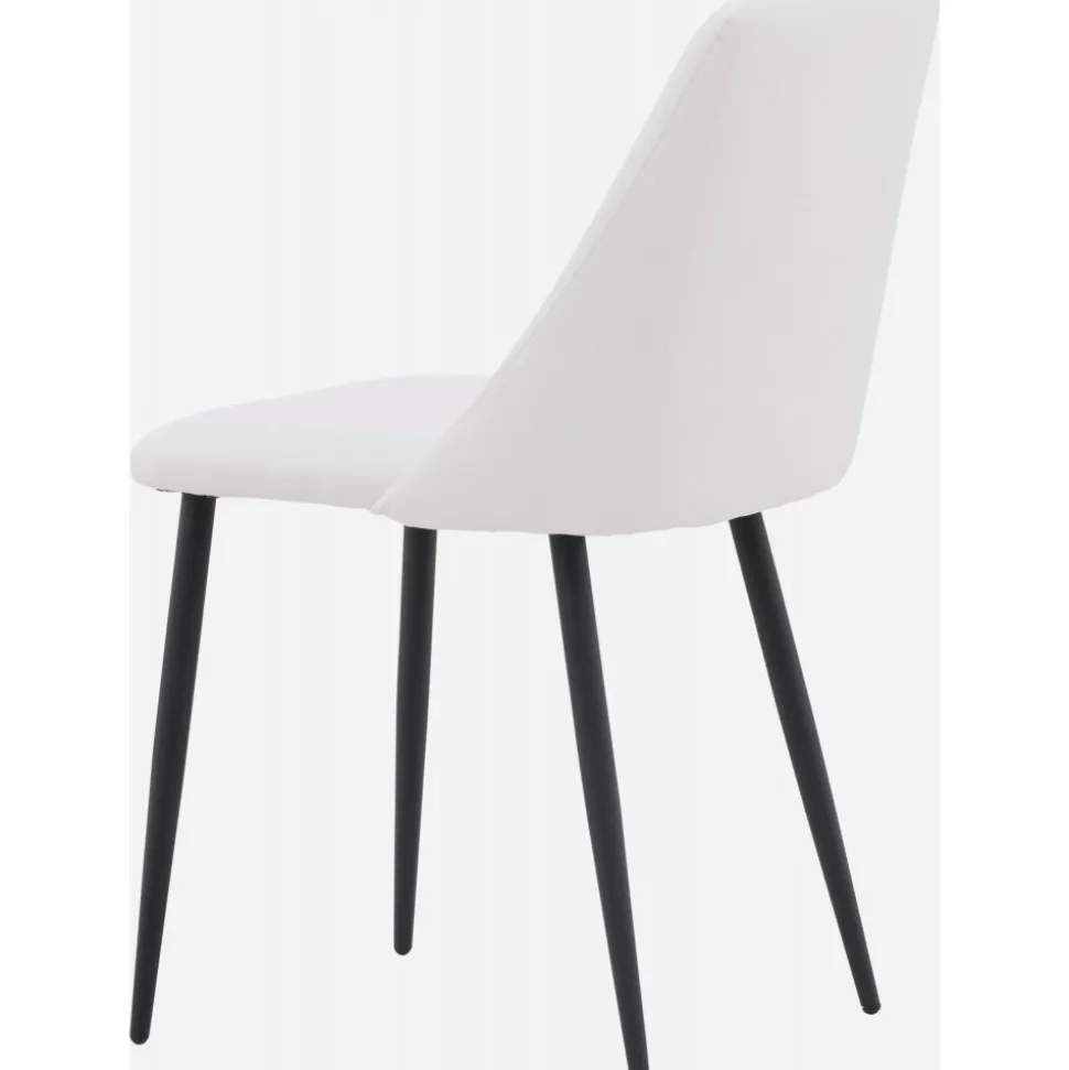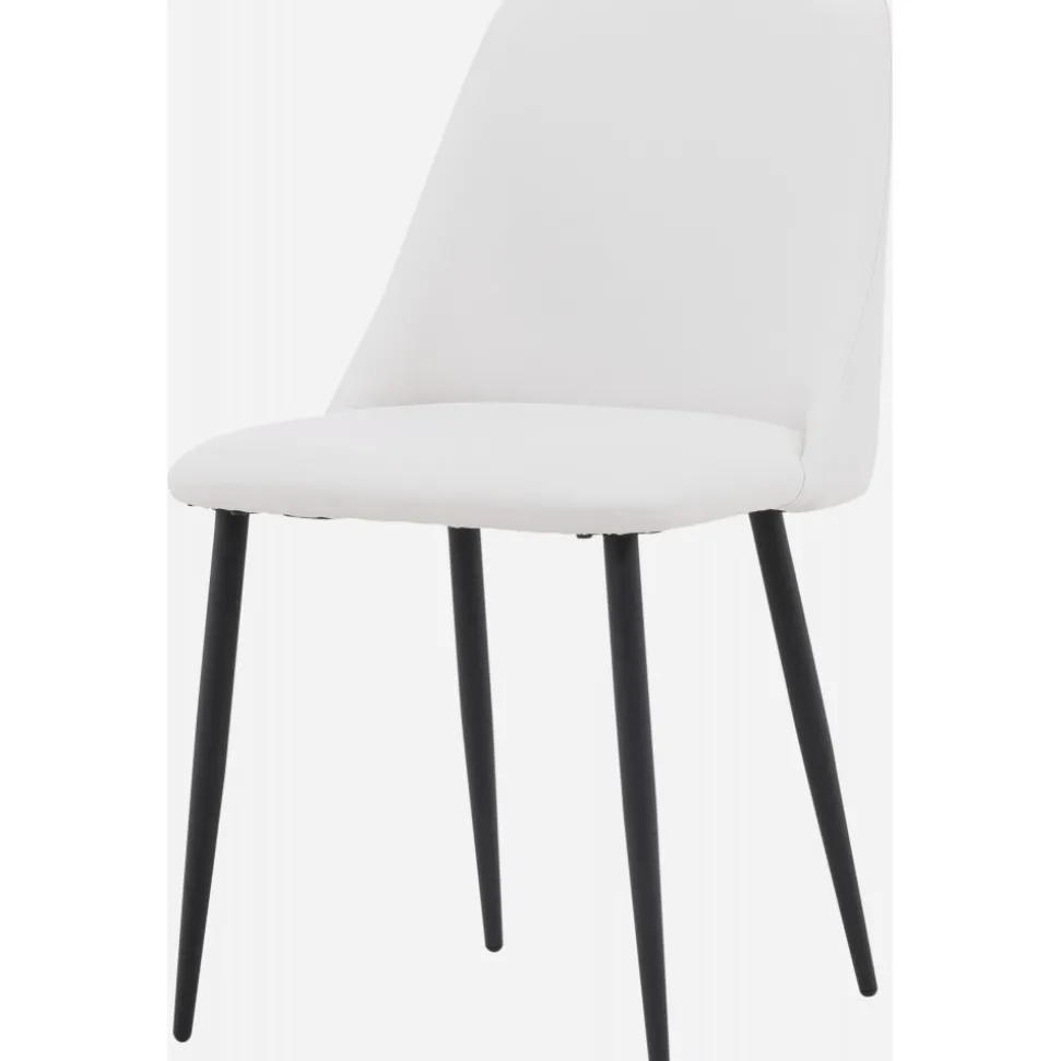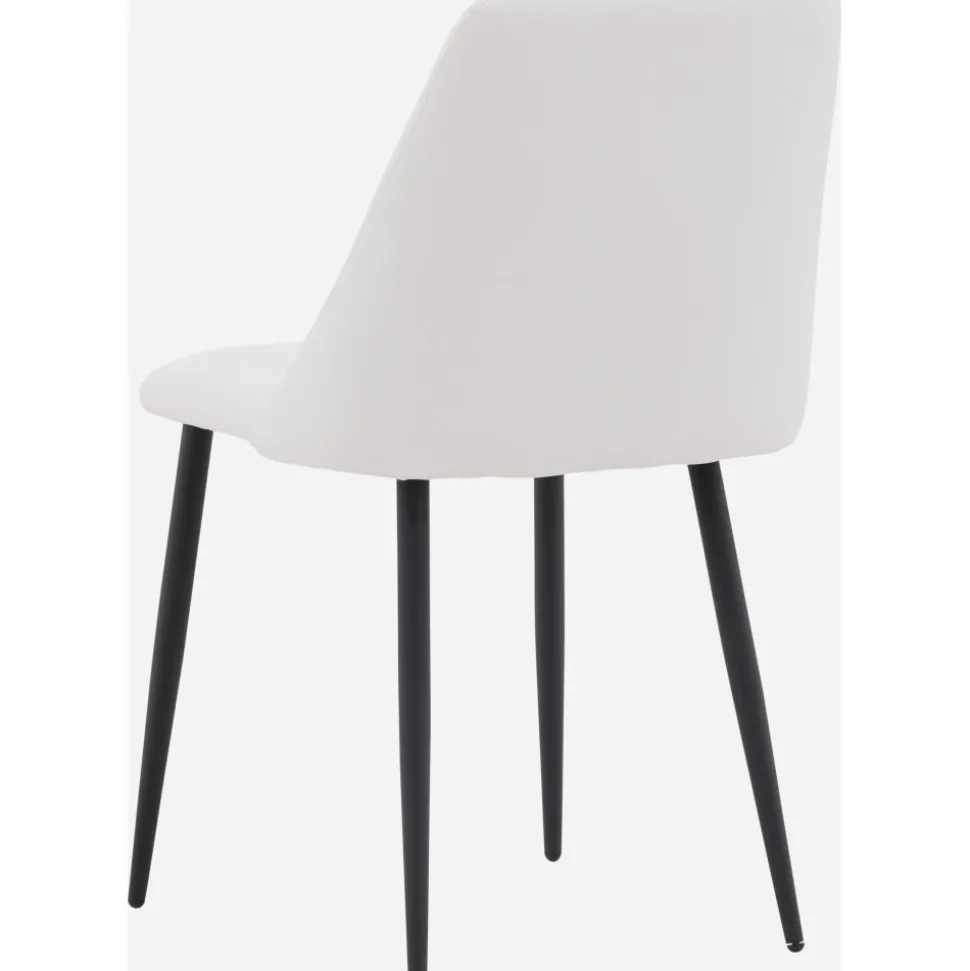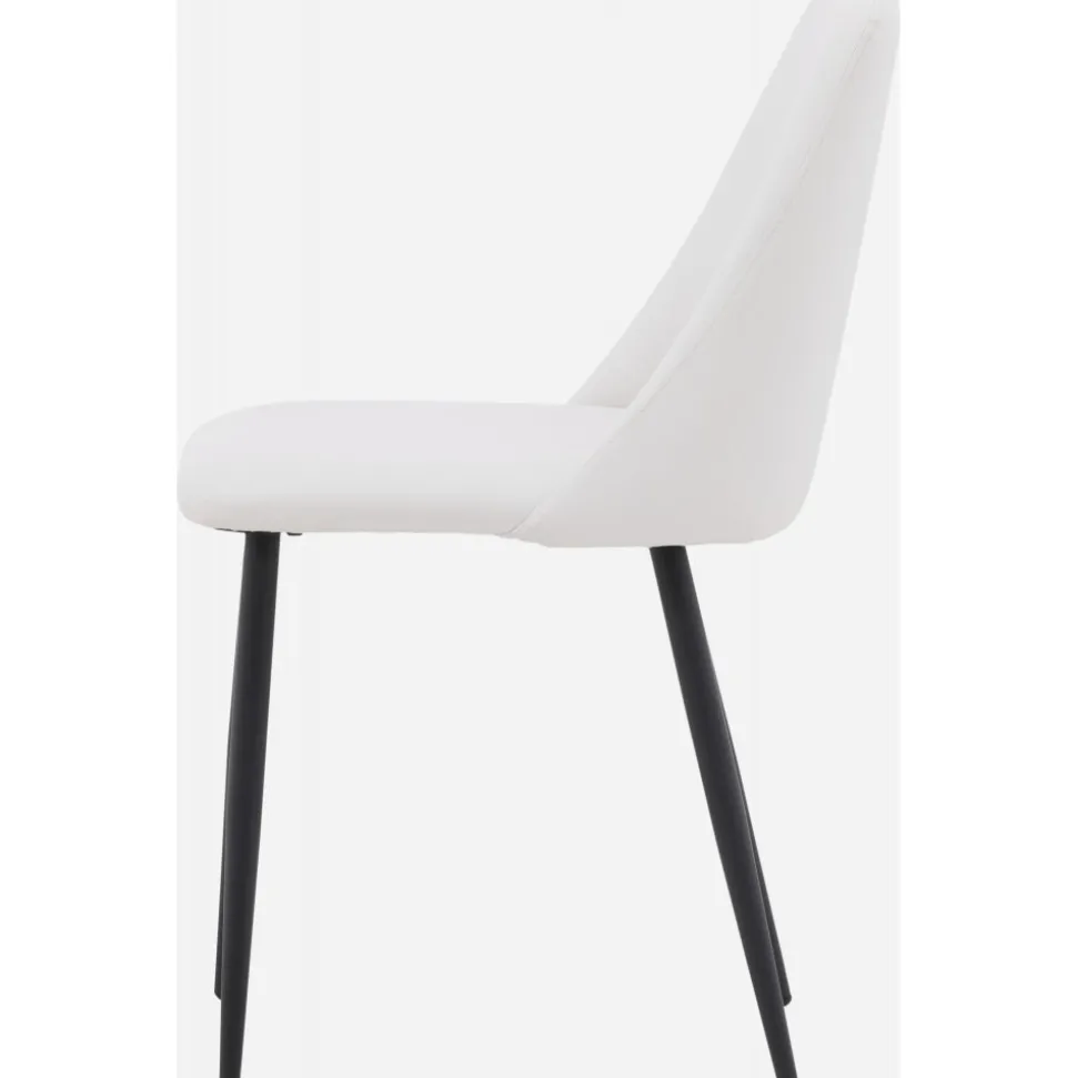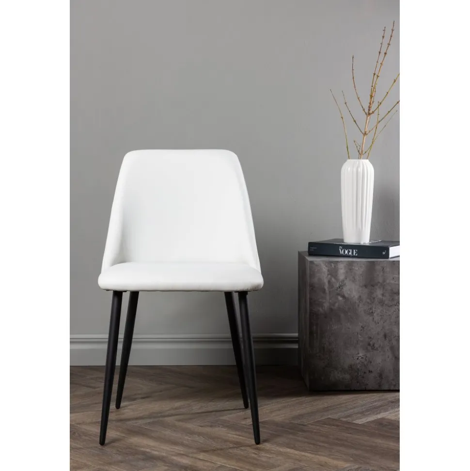 Matstol som har en helklädd sits i vit PU klädsel som känns lika lyxig som elegant och stolsbenen är i svart stål. Sitsen är även stoppad för extra komfort. Sitt bekvämt och njut av härliga måltider framöver!