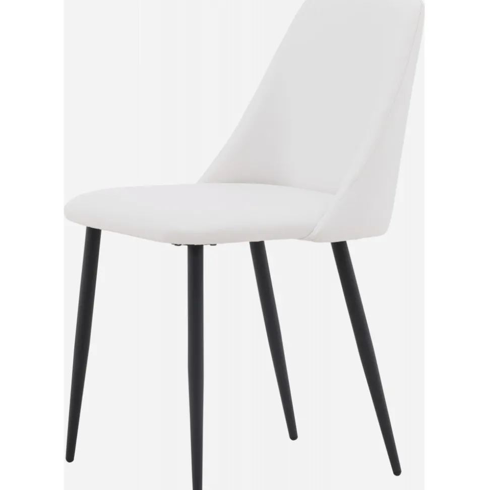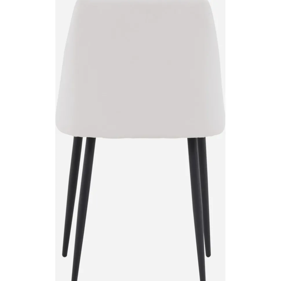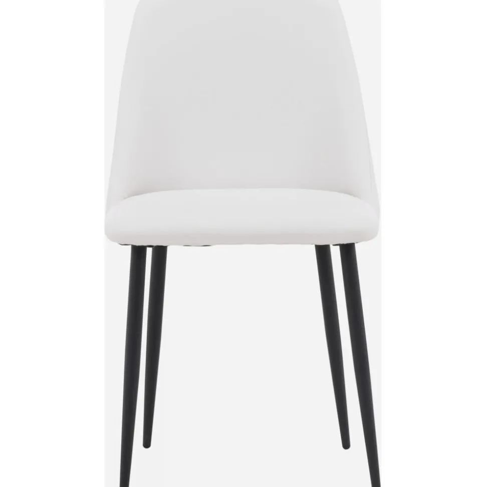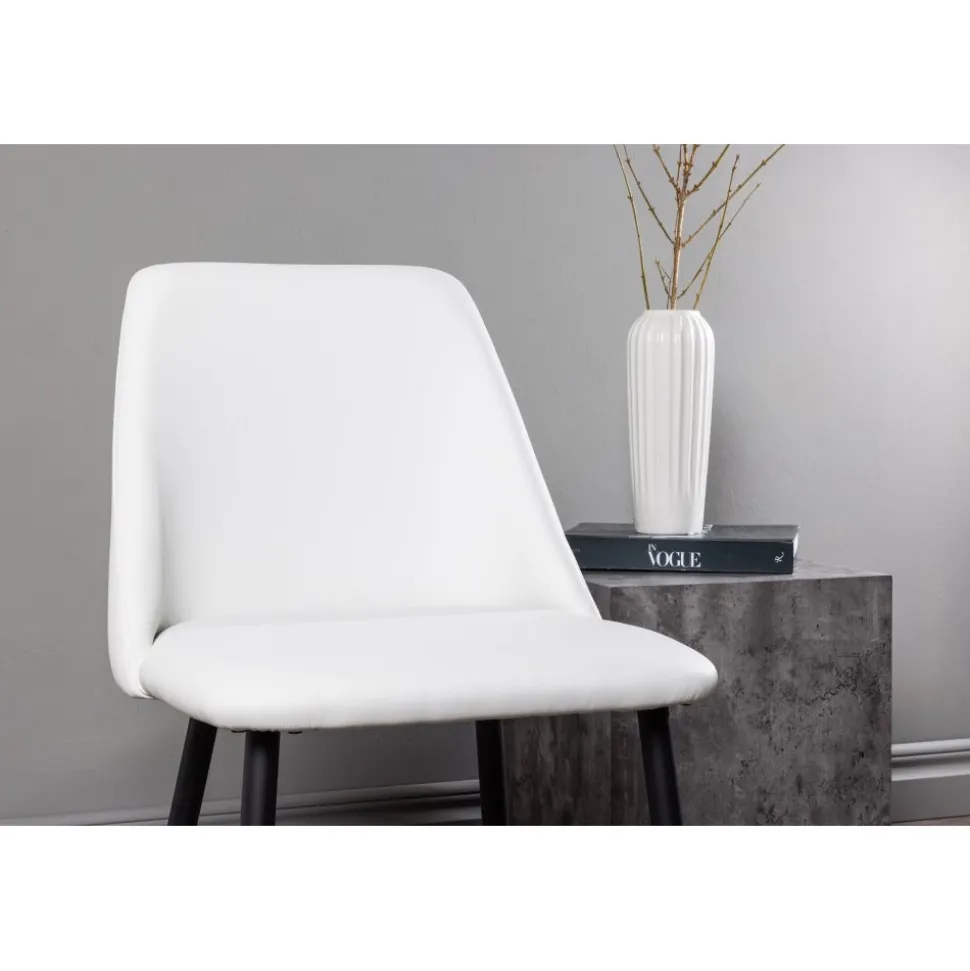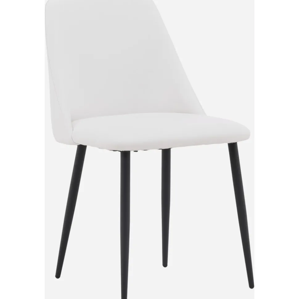 Matstol som har en helklädd sits i vit PU klädsel som känns lika lyxig som elegant och stolsbenen är i svart stål. Sitsen är även stoppad för extra komfort. Sitt bekvämt och njut av härliga måltider framöver!