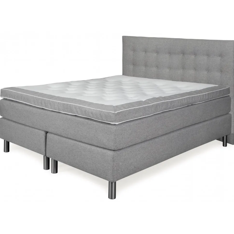 Sänggavel Noel i grått slitstarkt tyg (Neve 85). Sänggaveln har en klassisk design med knappar för att ge sänggaveln ett så modernt utseende som möjligt i sovrummet.