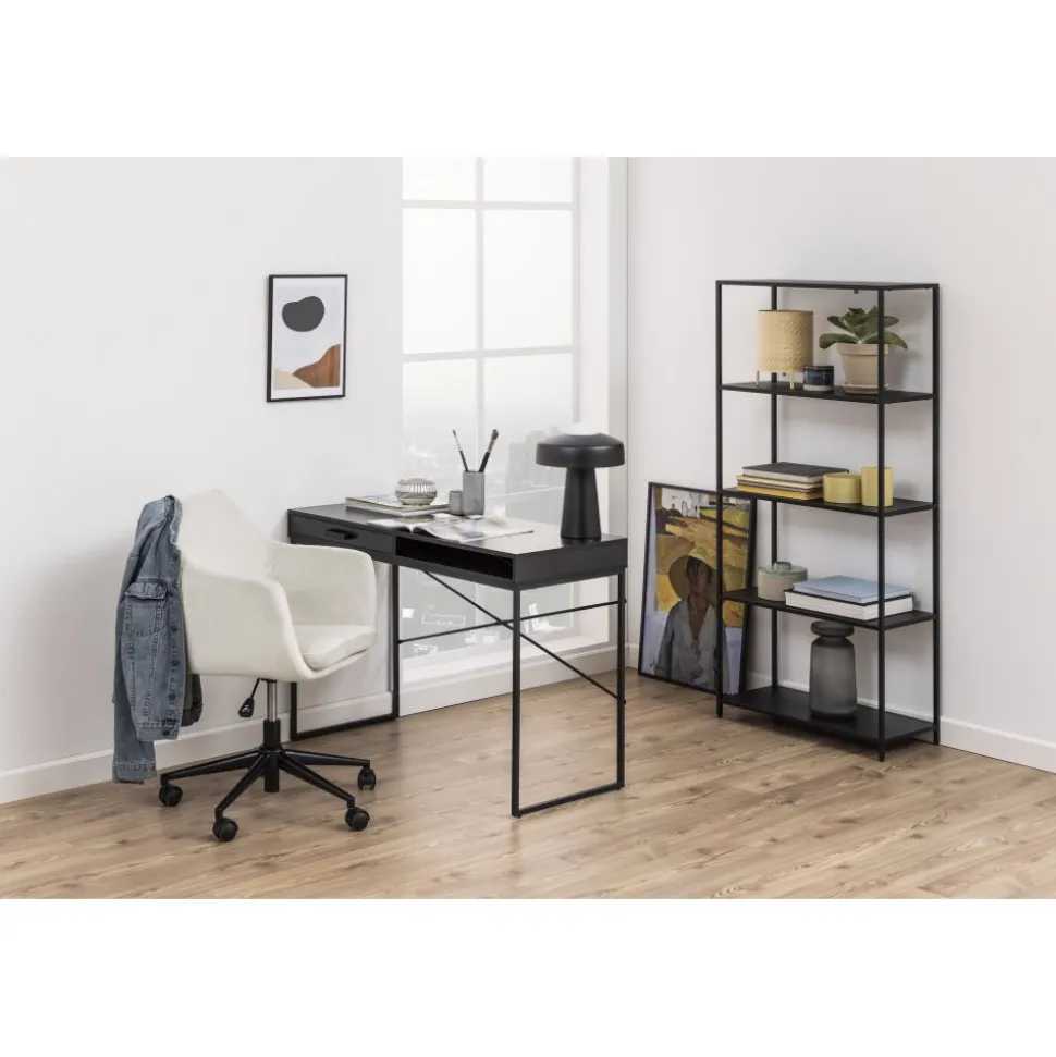 Kontorsstol med ben av pulverlackerad metall och klädsel av polyester.