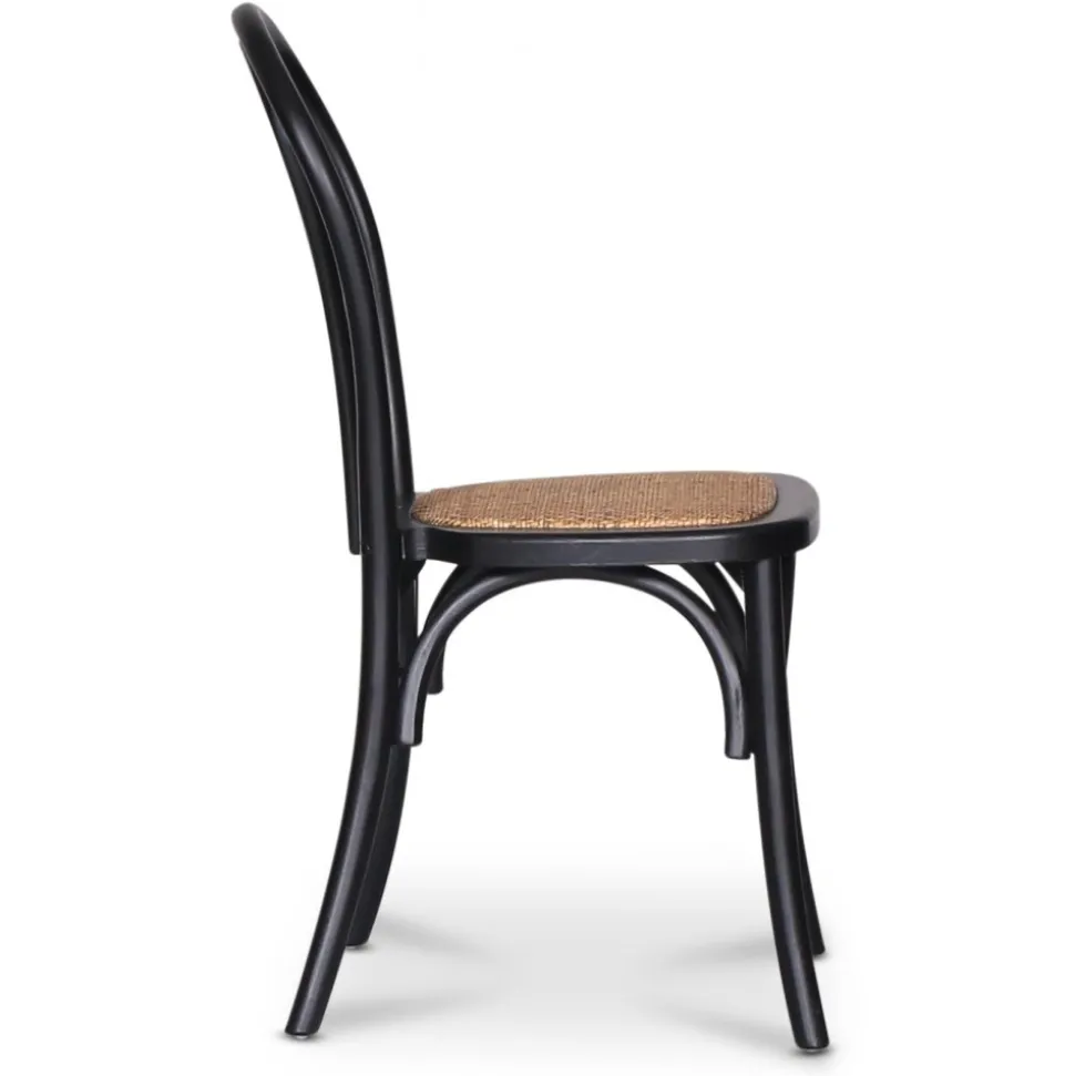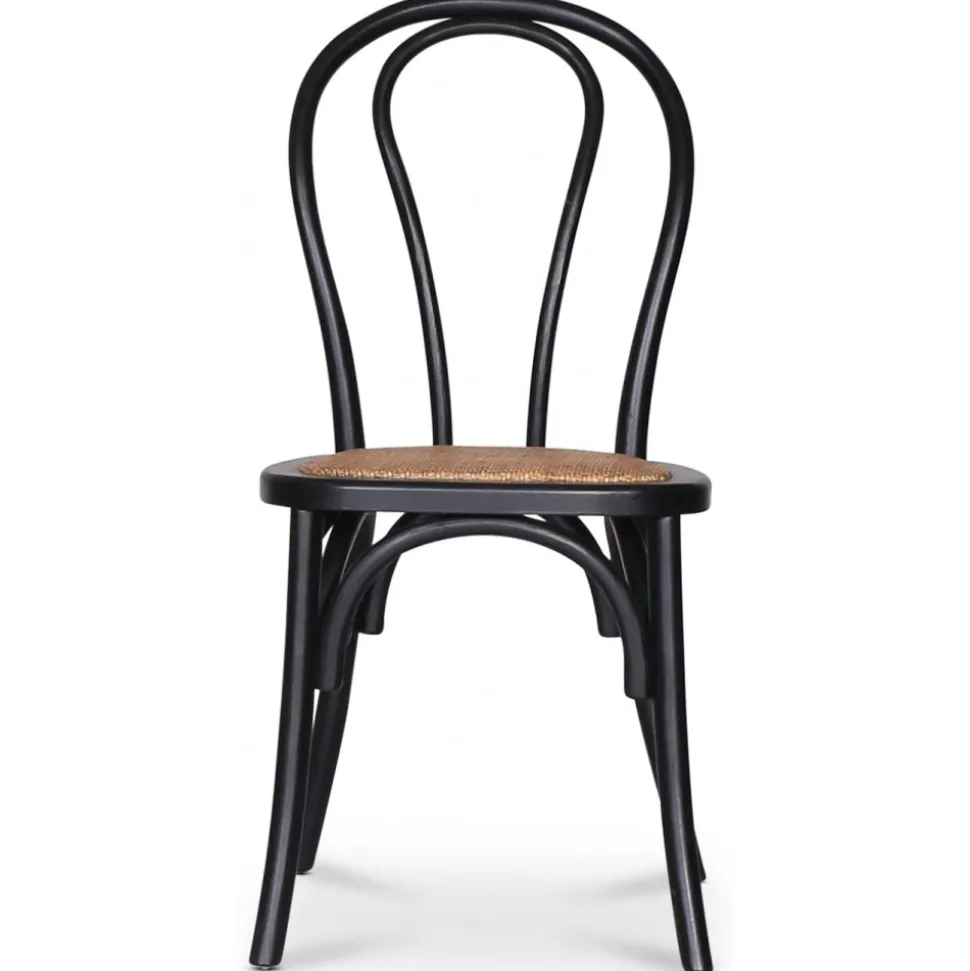 Matgrupp innehållande Omni matbord, serie runda matbord med toppskiva av ekfaner i olika utförande med matchande ben. Ett stilrent och nätt matbord. Ingår gör även 4 st Tony stolar med stomme av svart massiv bok och sits av antikfärgad rotting. Teknik för att böja träet har använts i designen. En stilig stol i neutrala färger, kombinera gärna med ett passande matbord.