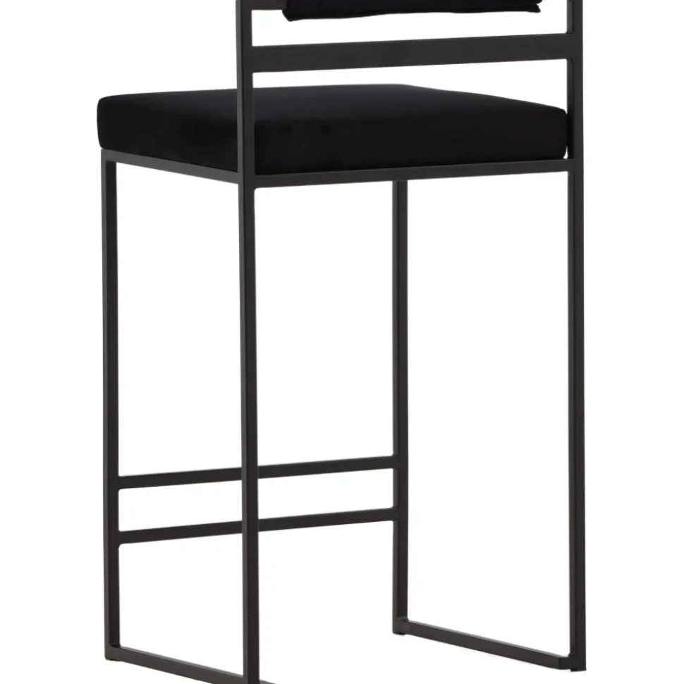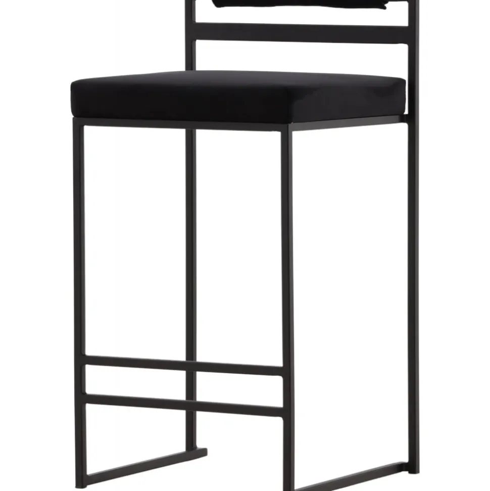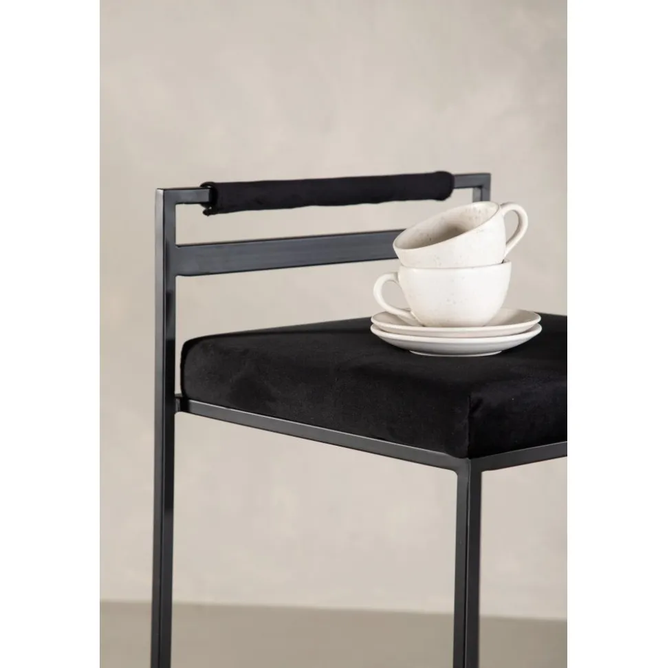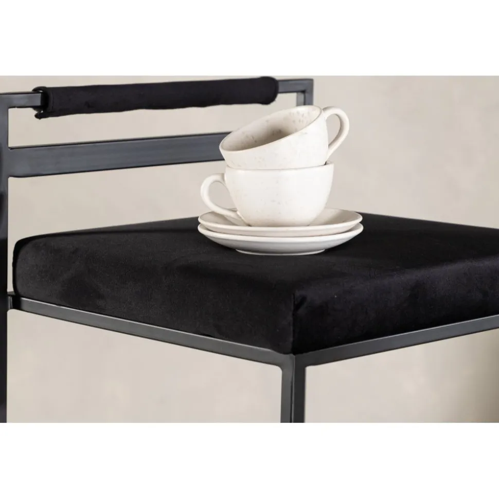 Barstolen som gör ett imponerande intryck och passar perfekt i det moderna hemmet. Den skandinaviska designen är trendsäker med sina raka nordiska former och minimalistiska stuk. Sitsen är mjukt stoppad och har en elegant klädsel i svart sammetstyg och benstommen är stilrent smal i svart stål med ett lägre ryggstöd samt integrerat fotstöd för extra komfort. Lika bekväm som iögonfallande gör dessa sig lika bra vid bardisken i köket som kring det höga matbordet!