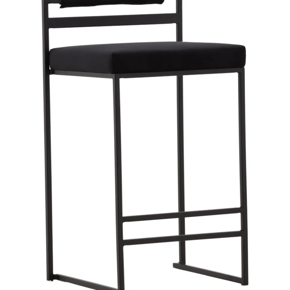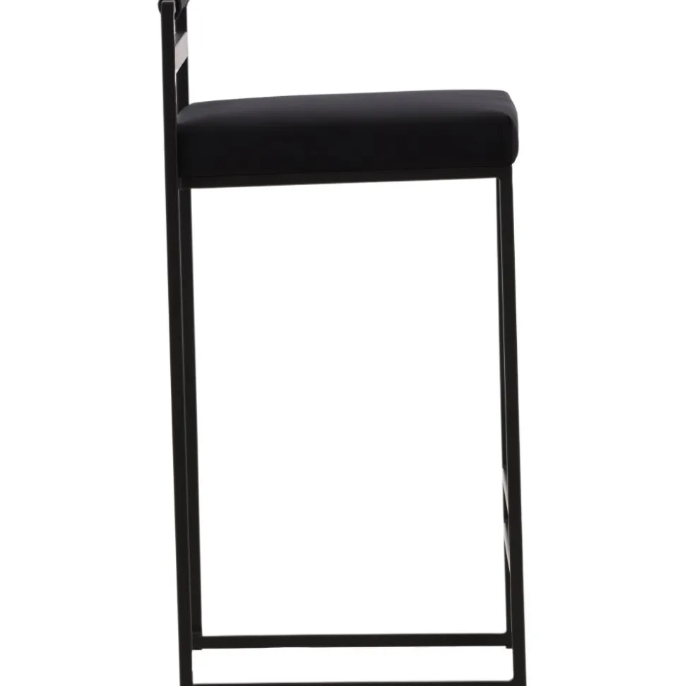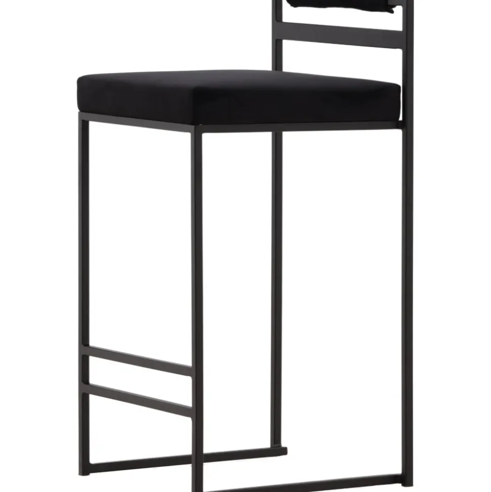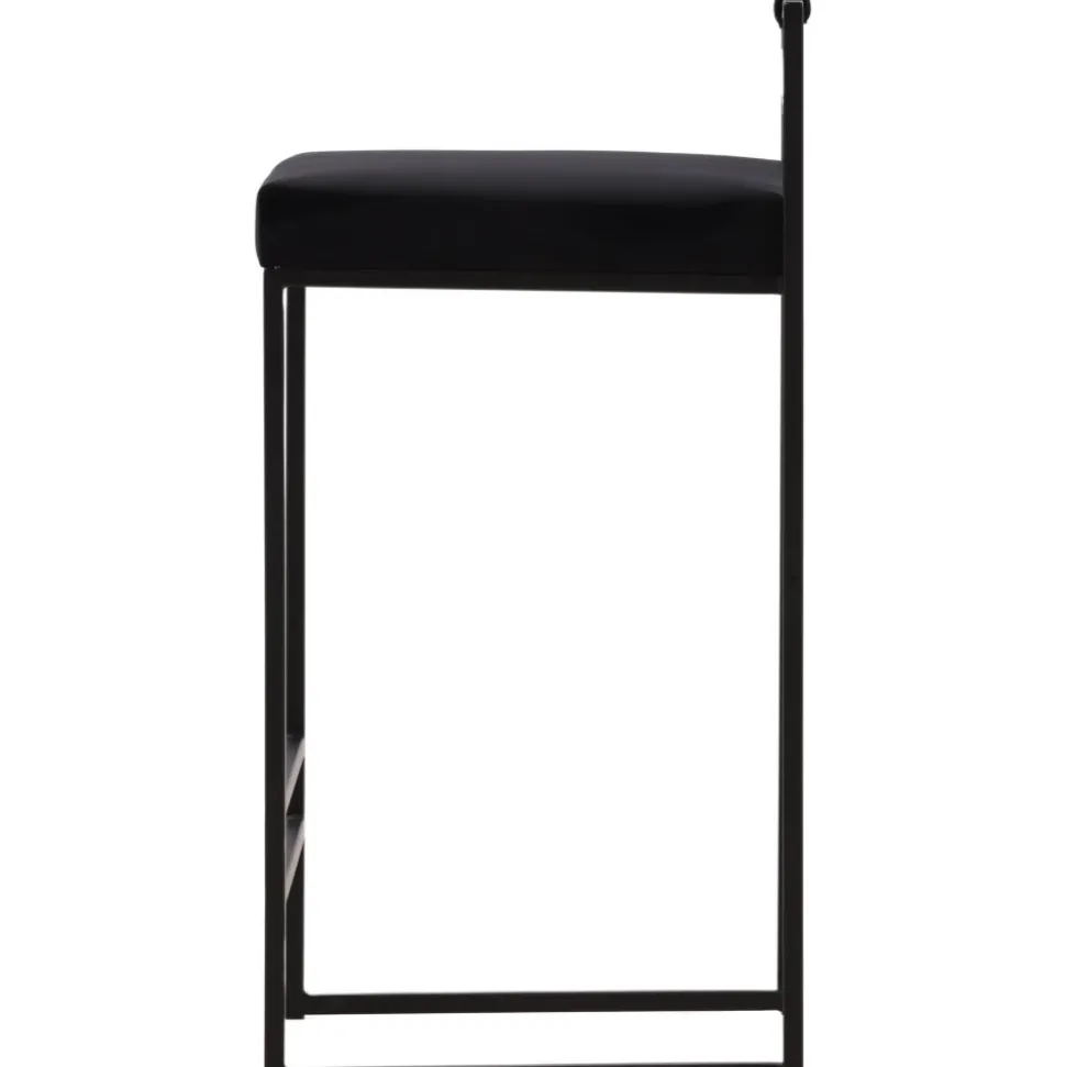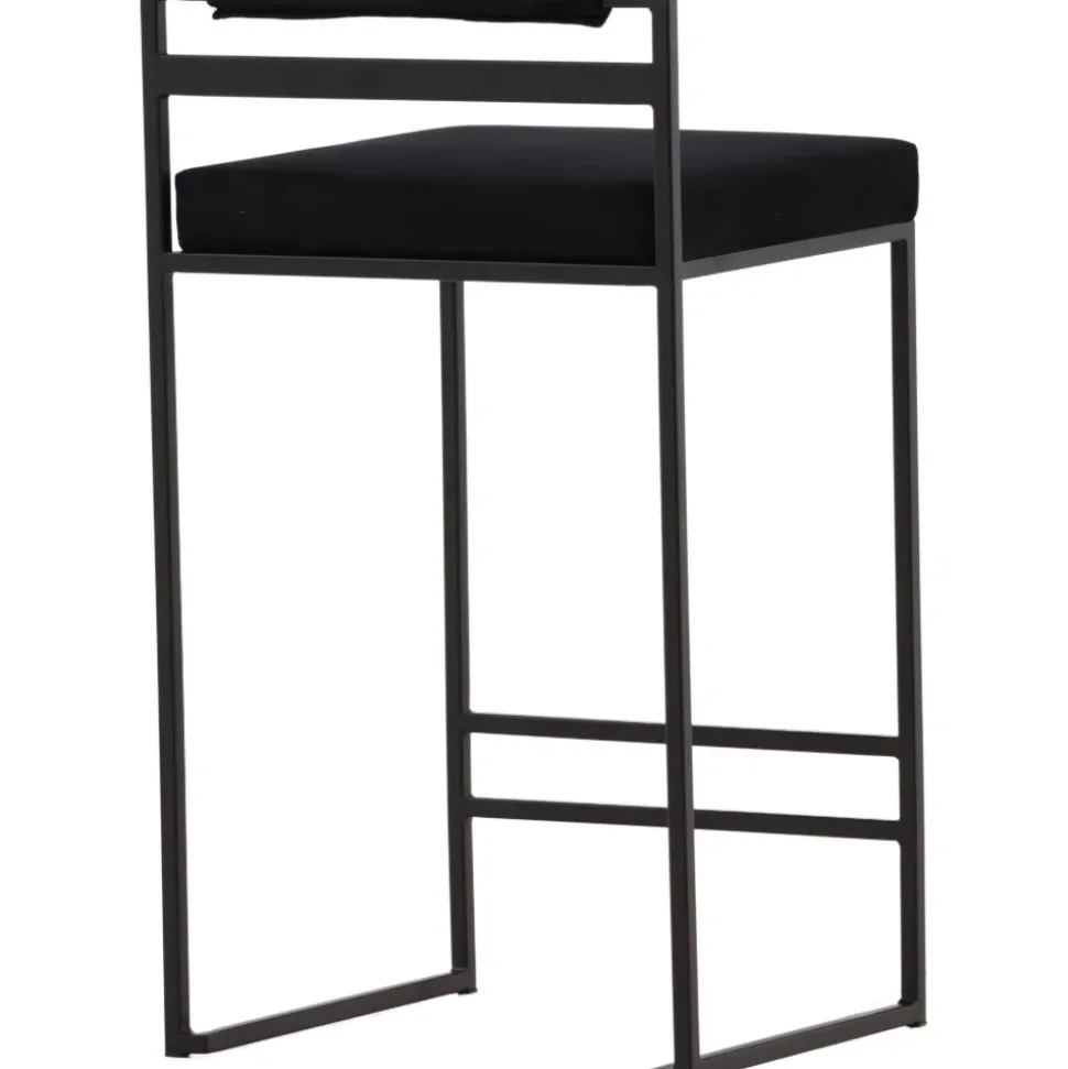 Barstolen som gör ett imponerande intryck och passar perfekt i det moderna hemmet. Den skandinaviska designen är trendsäker med sina raka nordiska former och minimalistiska stuk. Sitsen är mjukt stoppad och har en elegant klädsel i svart sammetstyg och benstommen är stilrent smal i svart stål med ett lägre ryggstöd samt integrerat fotstöd för extra komfort. Lika bekväm som iögonfallande gör dessa sig lika bra vid bardisken i köket som kring det höga matbordet!