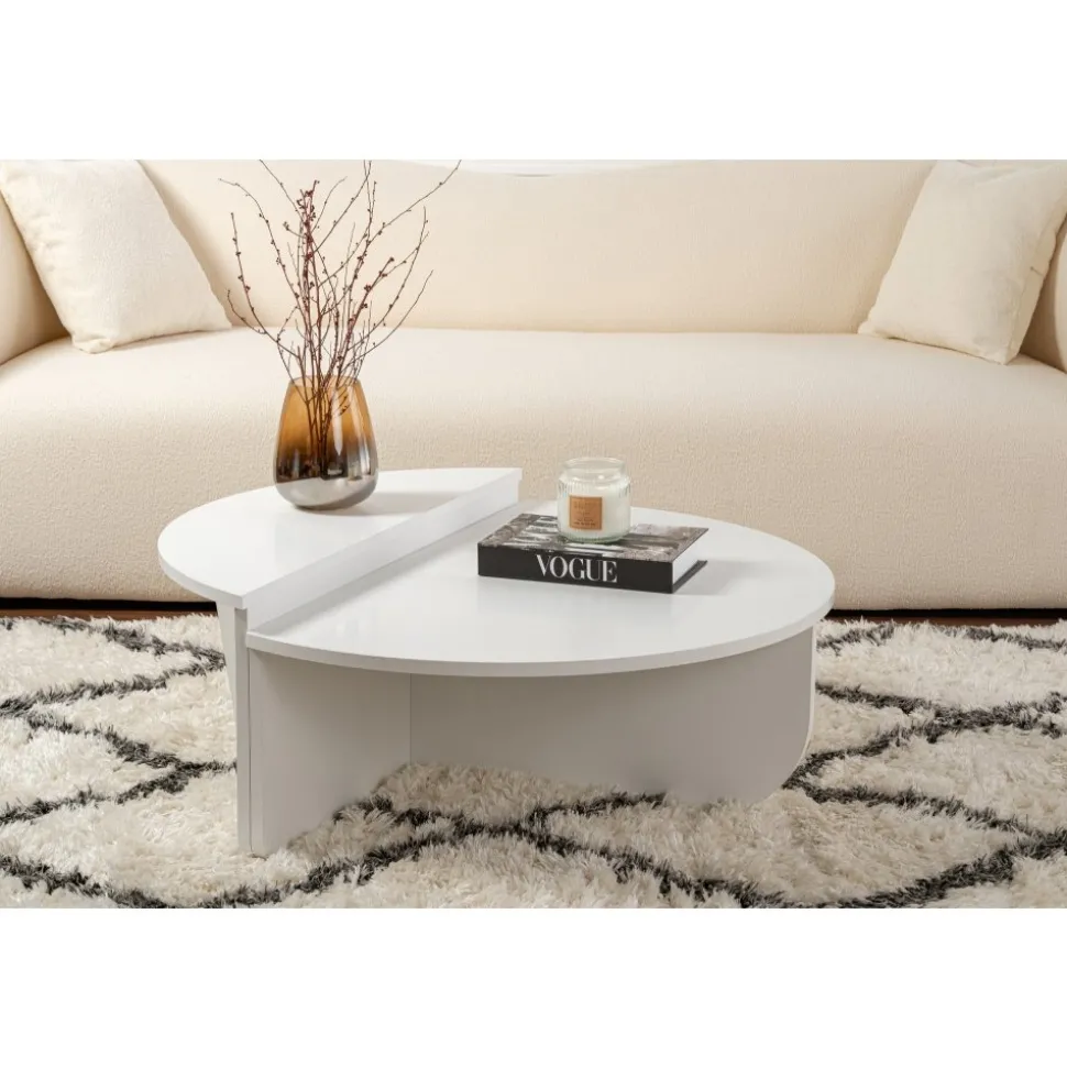 Den snygga designen och den vackra vita finishen på detta soffbord kommer omedelbart att höja utseendet på ditt vardagsrum. Dess moderna och eleganta estetik kommer att imponera på dina gäster och skapa en elegant atmosfär i ditt hem.