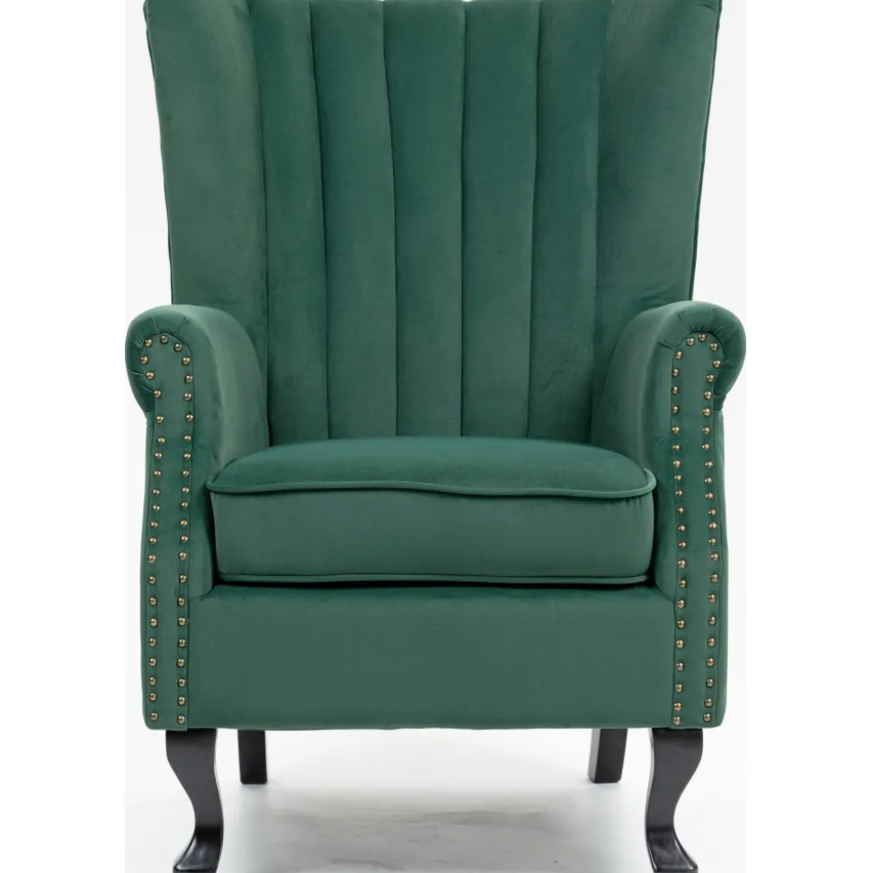 Ge ditt hem en touch av elegans och komfort med vår Rutil grön öronlappsfåtölj. Denna fantastiska är designad för att erbjuda både stil och avkoppling, vilket gör den till ett utmärkt val för alla rum i huset. Den djupgröna sammetstyget ger fåtöljen en lyxig känsla och en rik färg som kommer att lysa upp ditt utrymme. Öronlapparna ger inte bara en klassisk charm, utan erbjuder också extra stöd och avskildhet, vilket gör den idealisk för avkoppling med en bok eller för att njuta av ditt favoritprogram.
