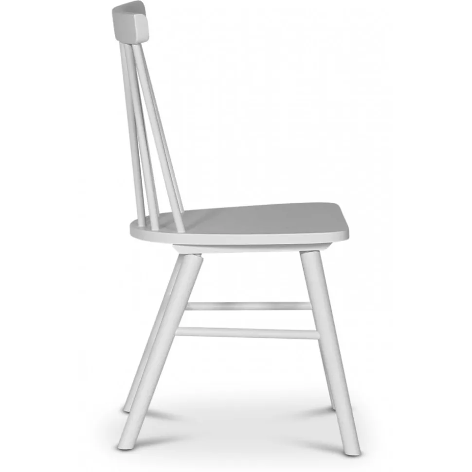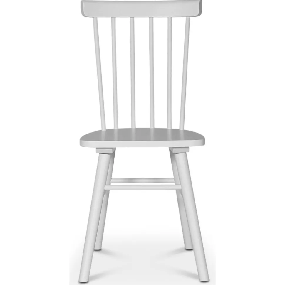 En svenskdesignad klassisk pinnstol i massivt trä som ger en skön tyngd och kvalitet i stolen. Stolen är i vitlackat utförande med sex ribbor i stolsryggen. Den har en djupare sits och en stabilare konstruktion.