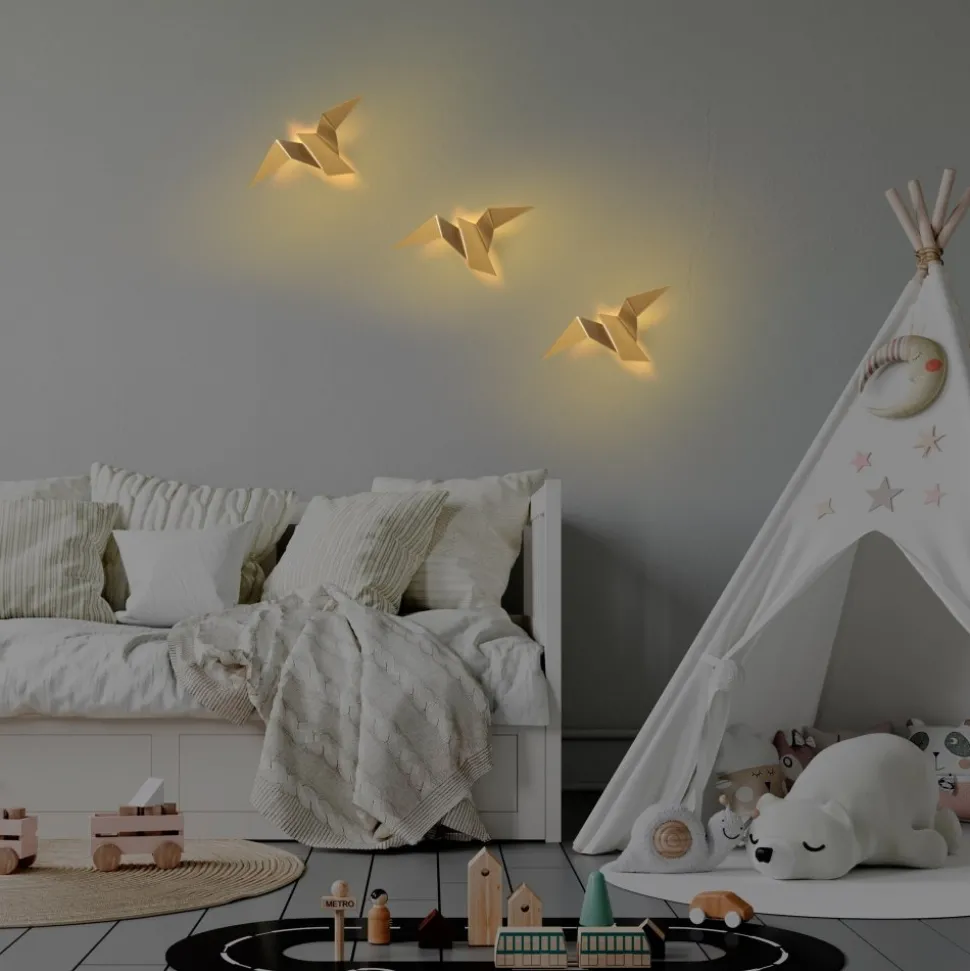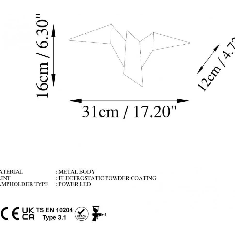 Vägglampa av metall som pulverlackerats i guldfärg. Ljuskällan består av LED-belysning i form av Power LED dioder.