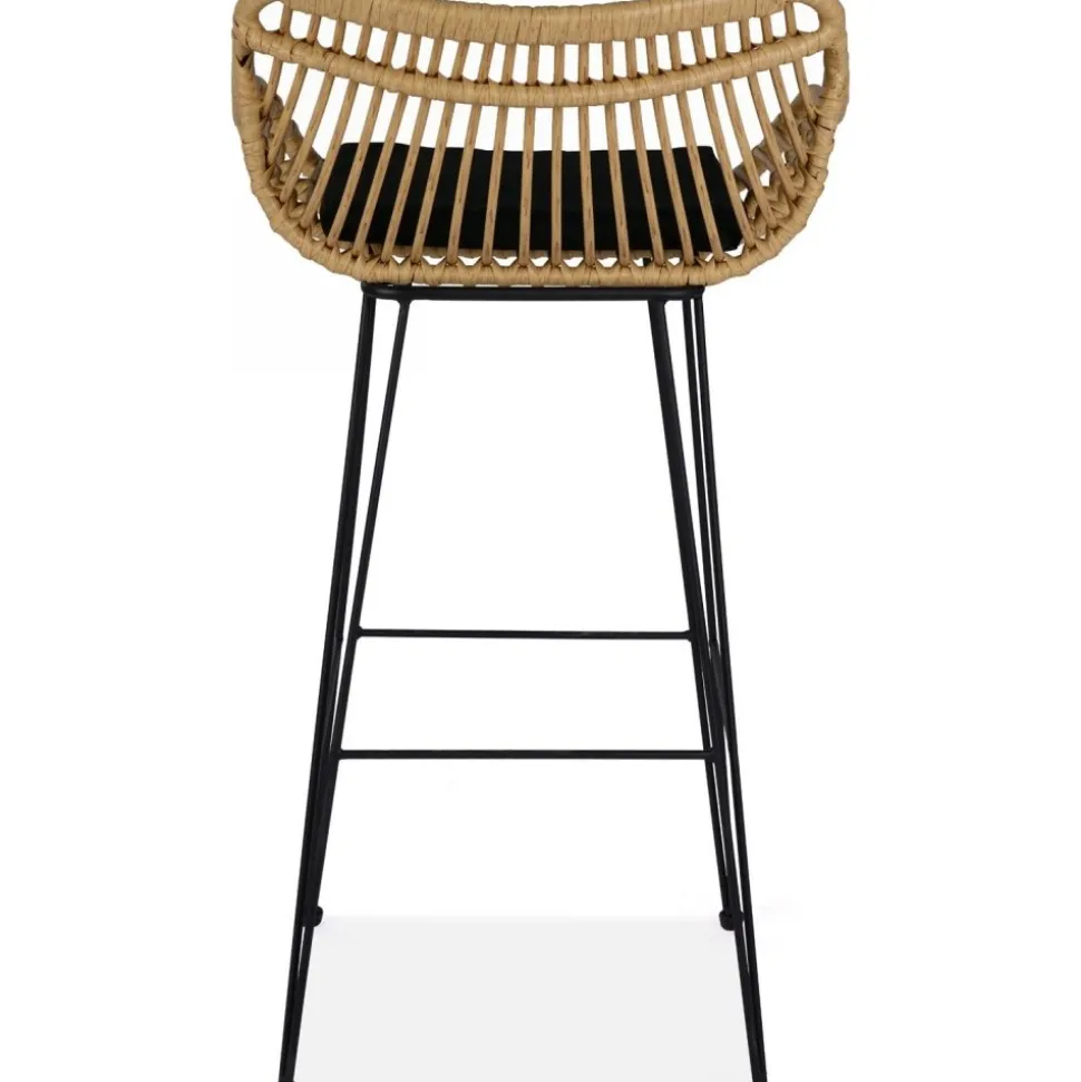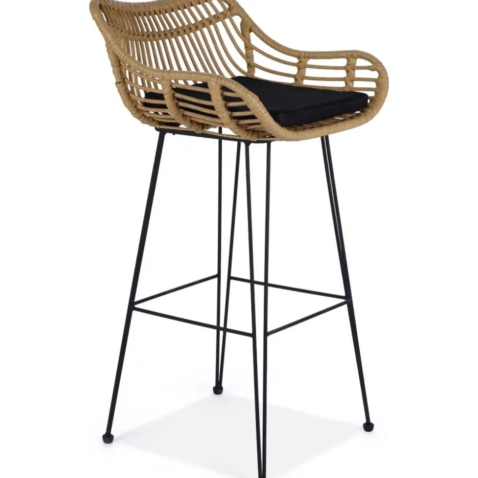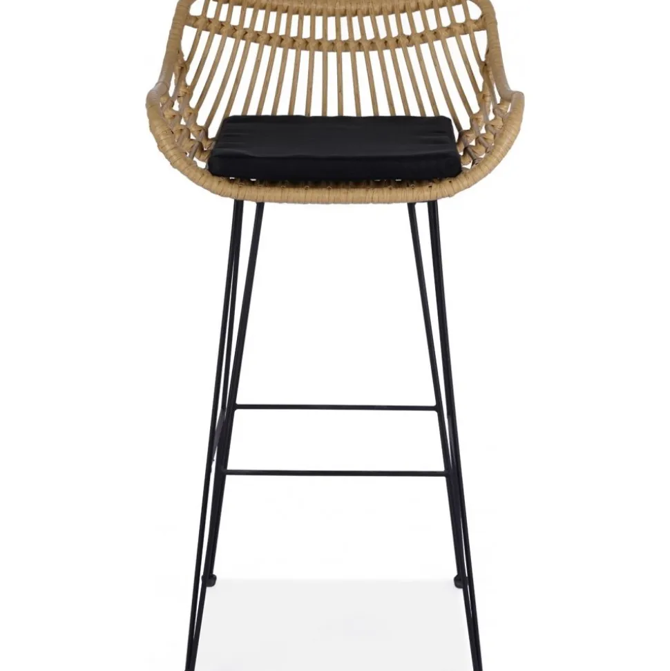 Barstol av stål och konstrotting med klädsel av tyg.