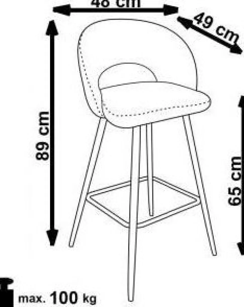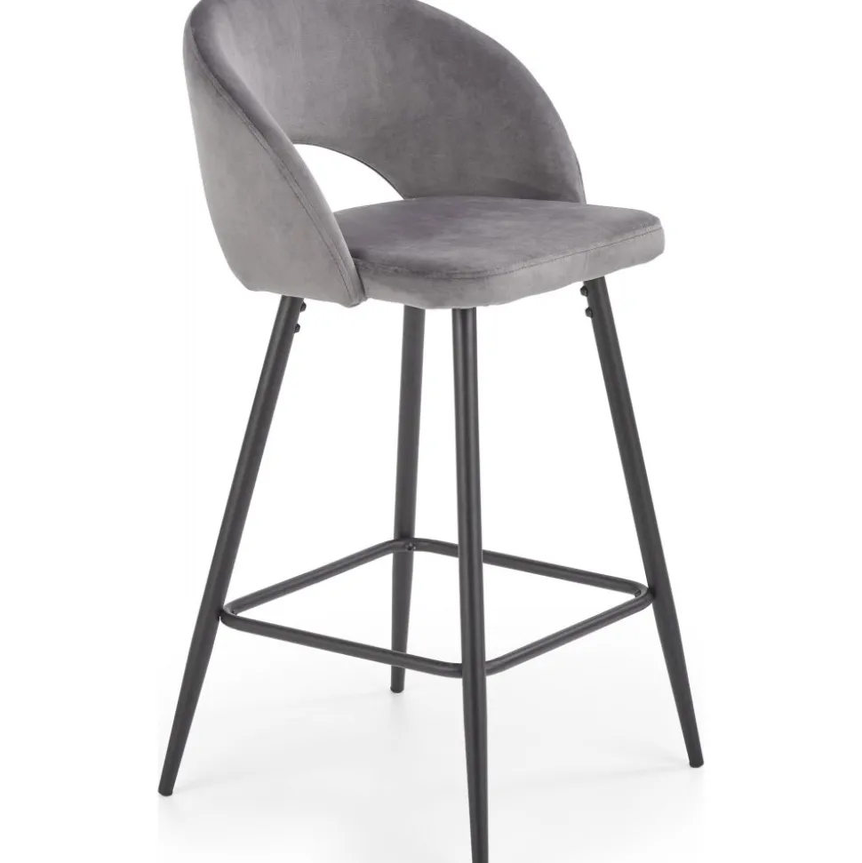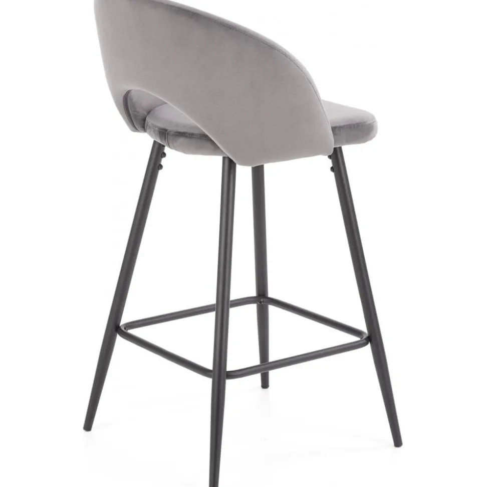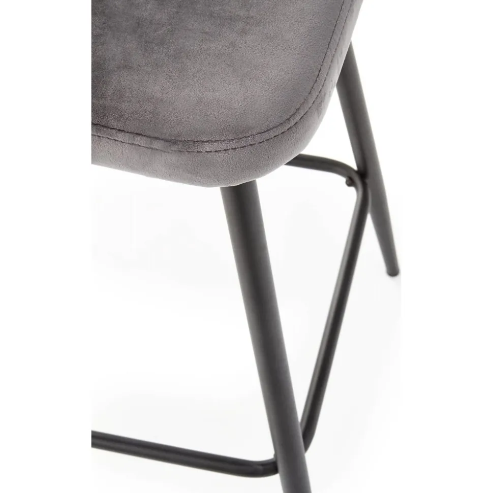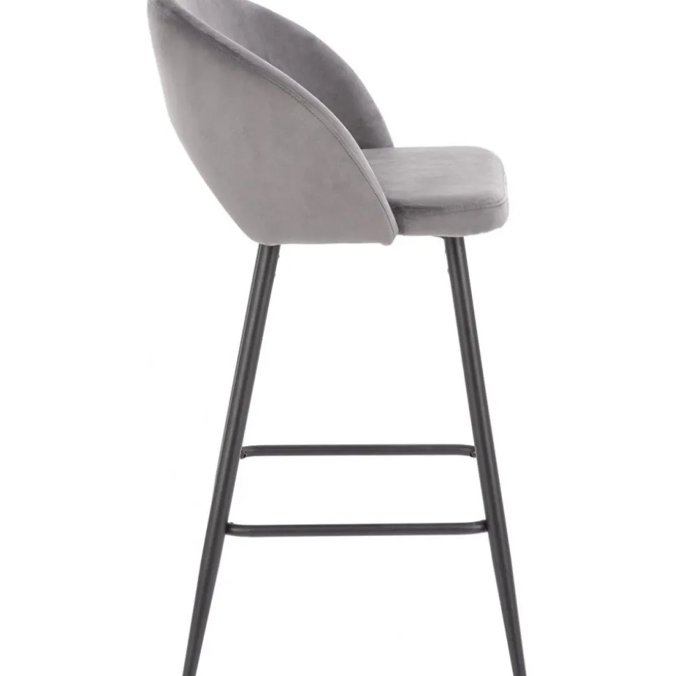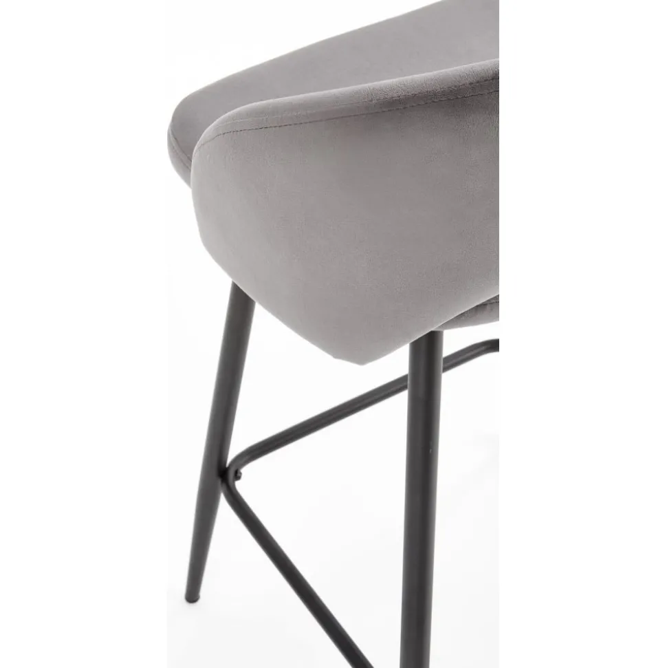 Barstol med underrede av stål och klädsel av sammetstyg.