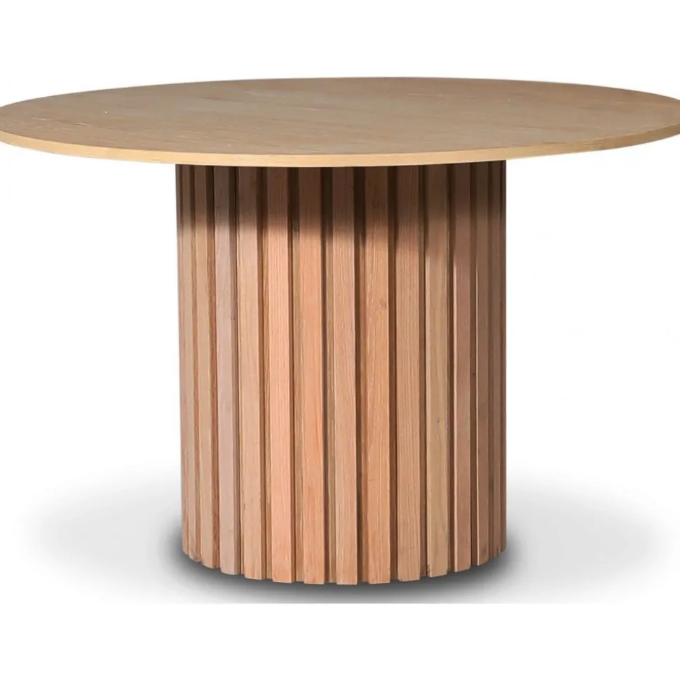 Vår PiPi bordsserie står för hantverk, design och hållbarhet. Vi erbjuder valnöt, whitewash, svartbetsat trä och ek. Serien innehåller olika storlekar och utföranden. Välj just ditt utförande för matplatsen. Denna modellen har en snygg runt toppskiva i utförandet fanèrad oljad ek.