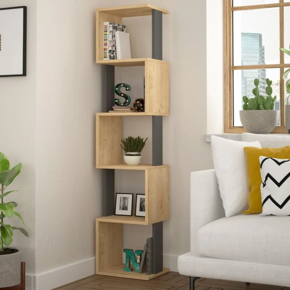 Bokhylla av melaminbelagd spånskiva.